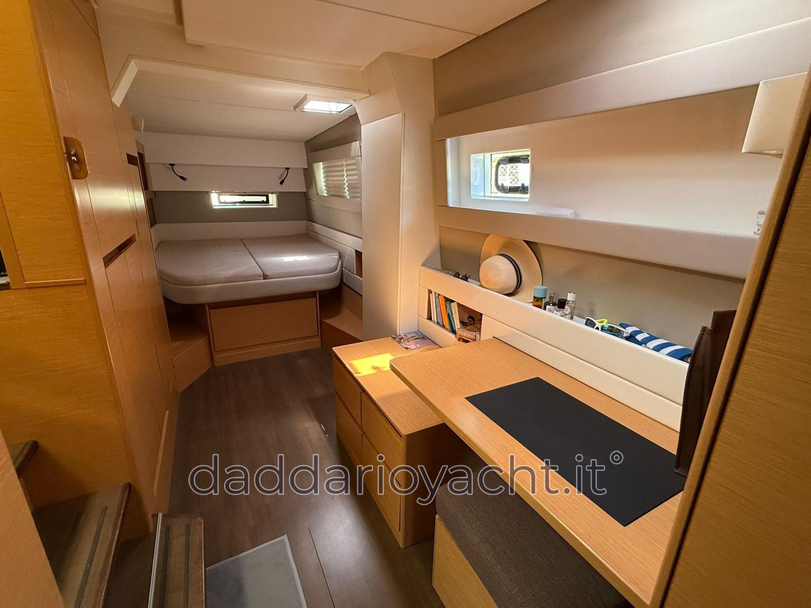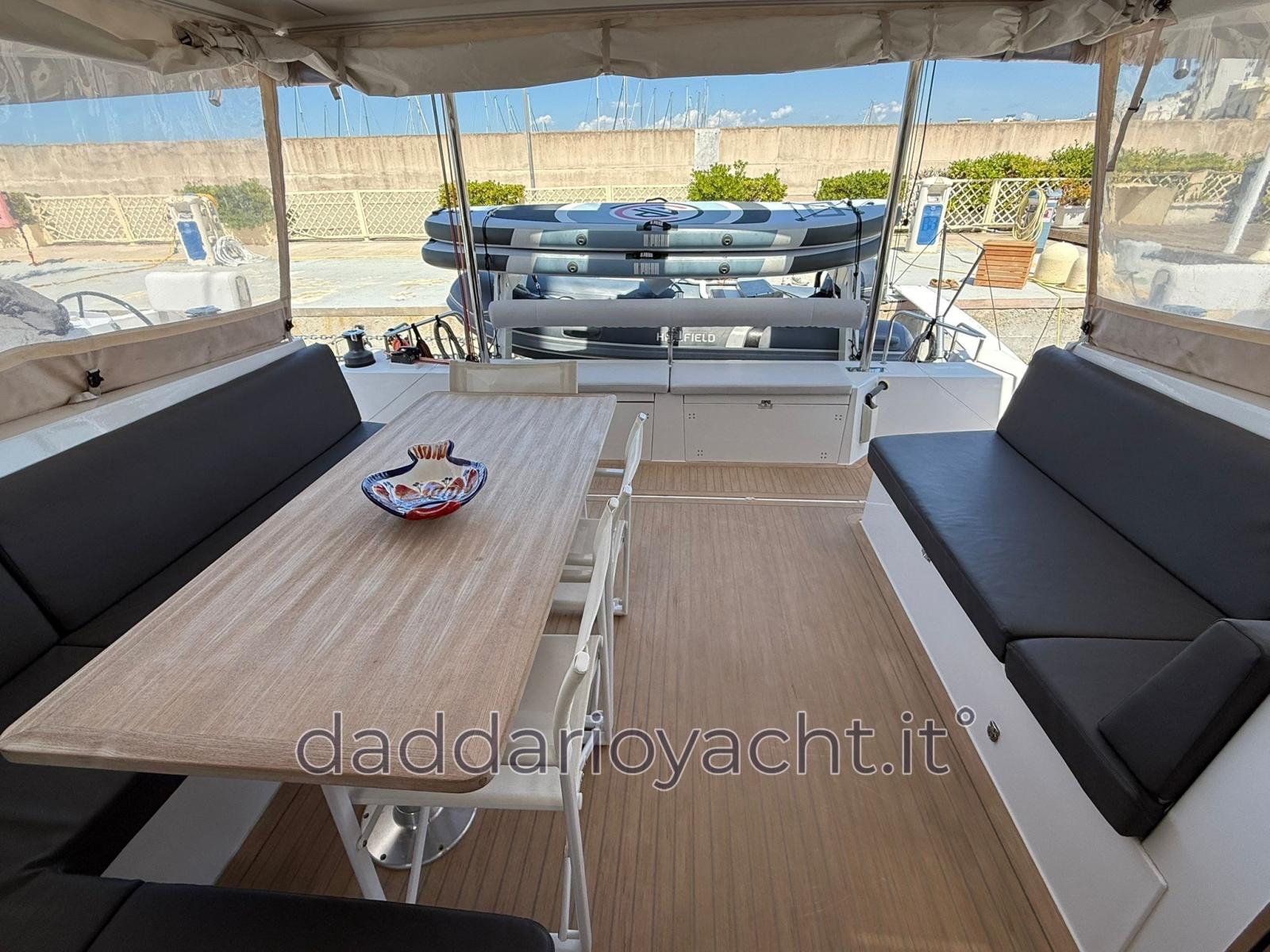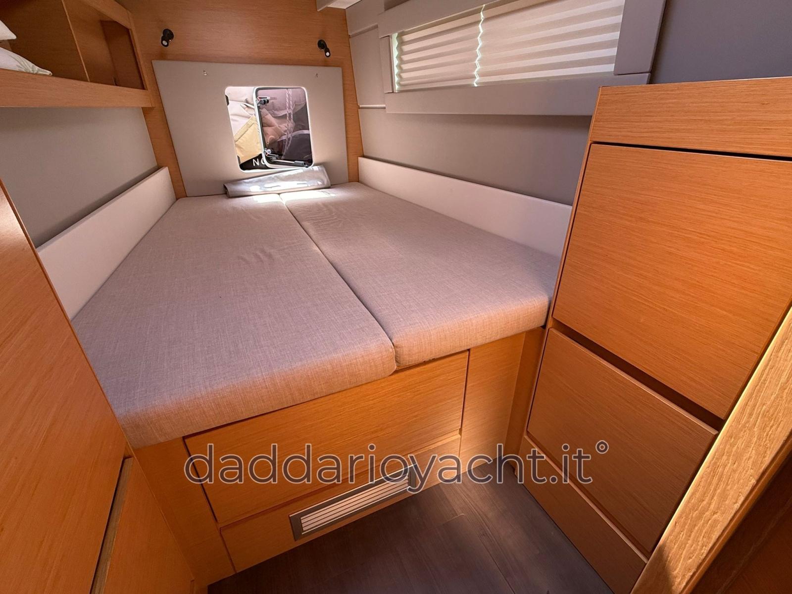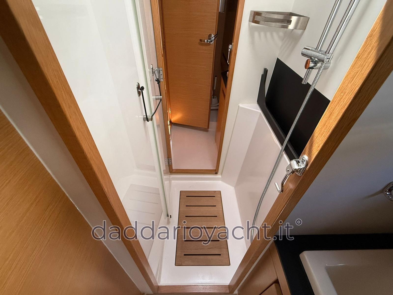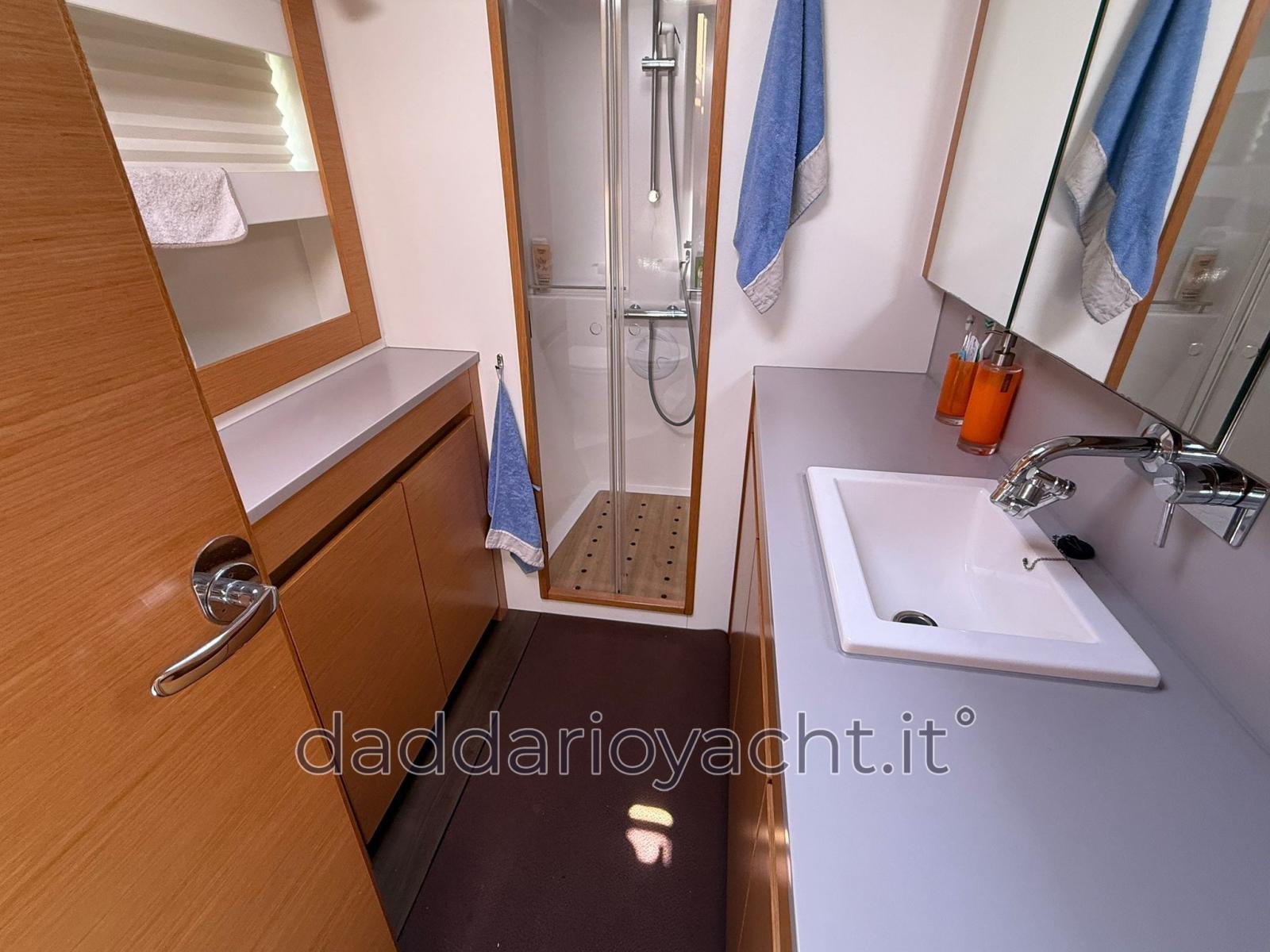 Engine Alarm, Anchor (DELTA 20KG+ 70MT CATENA DA 10mm), 2 Water pressure pump (UNA PER ACQUA DI MARE AL LAVANDINO), 7 Batteries (4X150Ah servizi + 2 MOTORI+ 1 GENERATORE), Battery charger (100A), Shore power cable, Special Colour (WRAPPING GRIGIO), Deck Shower, Twin Steering (CARBONIO), Tender Crane, Courtesy Lights (blu pozzetto e poppa), Underwater lights, Auxiliary Engine (YAMAHA 25CV PER TENDER), Fenders, 2 Electric Bilge Pump, Manual Bilge Pump, Entry door, Teak Cockpit (FLEXITEAK), Shorepower connector, Electric Windlass, Strand rigging, 2 swimming ladder, cockpit table (teak 10pax), Living Room Foldable Table, 3 Winch Electric (POZZETTO DX+SX+DRIZZA RANDA).