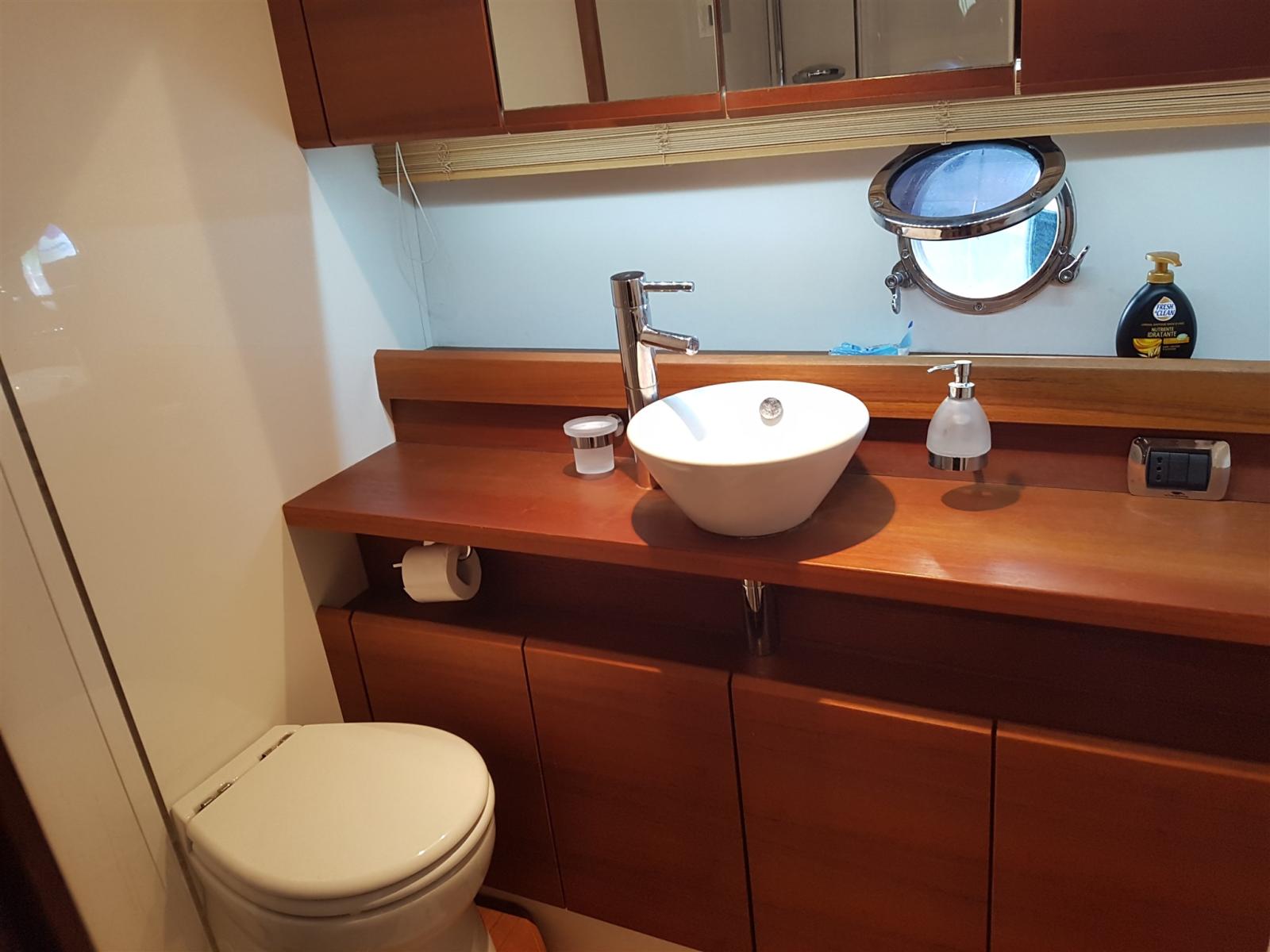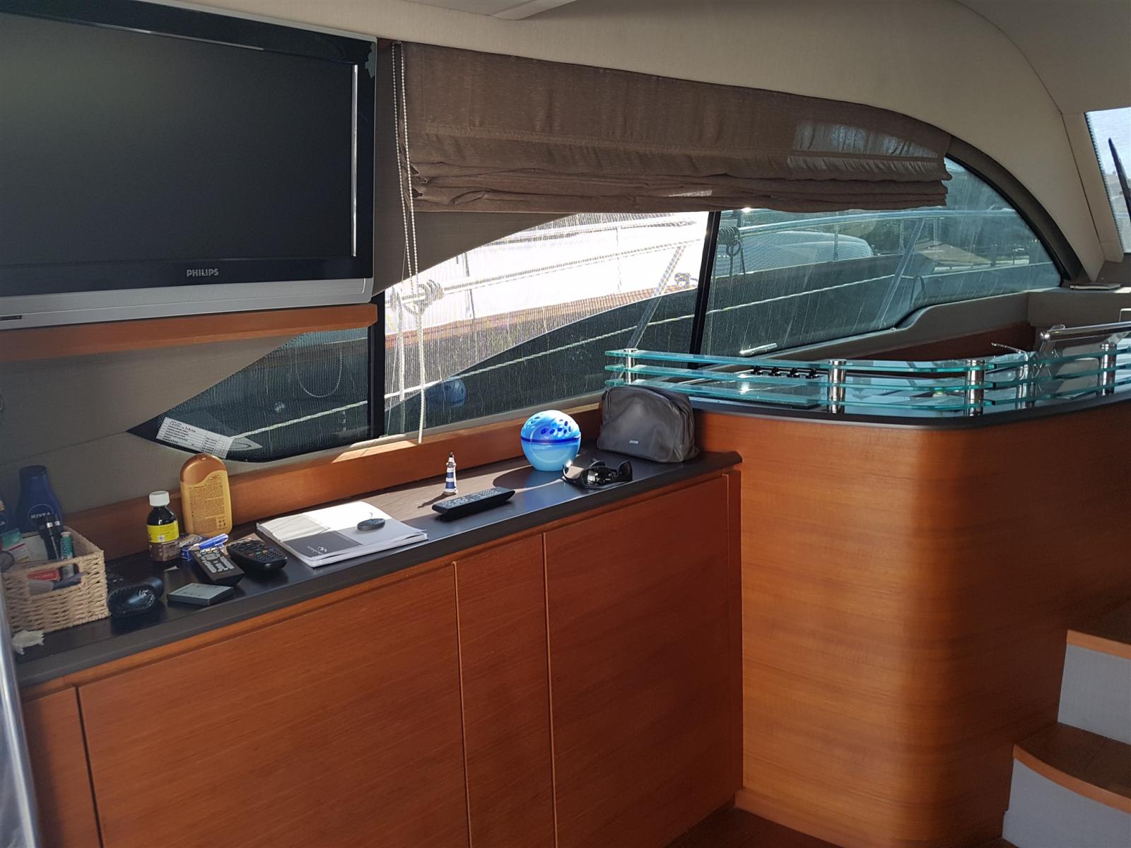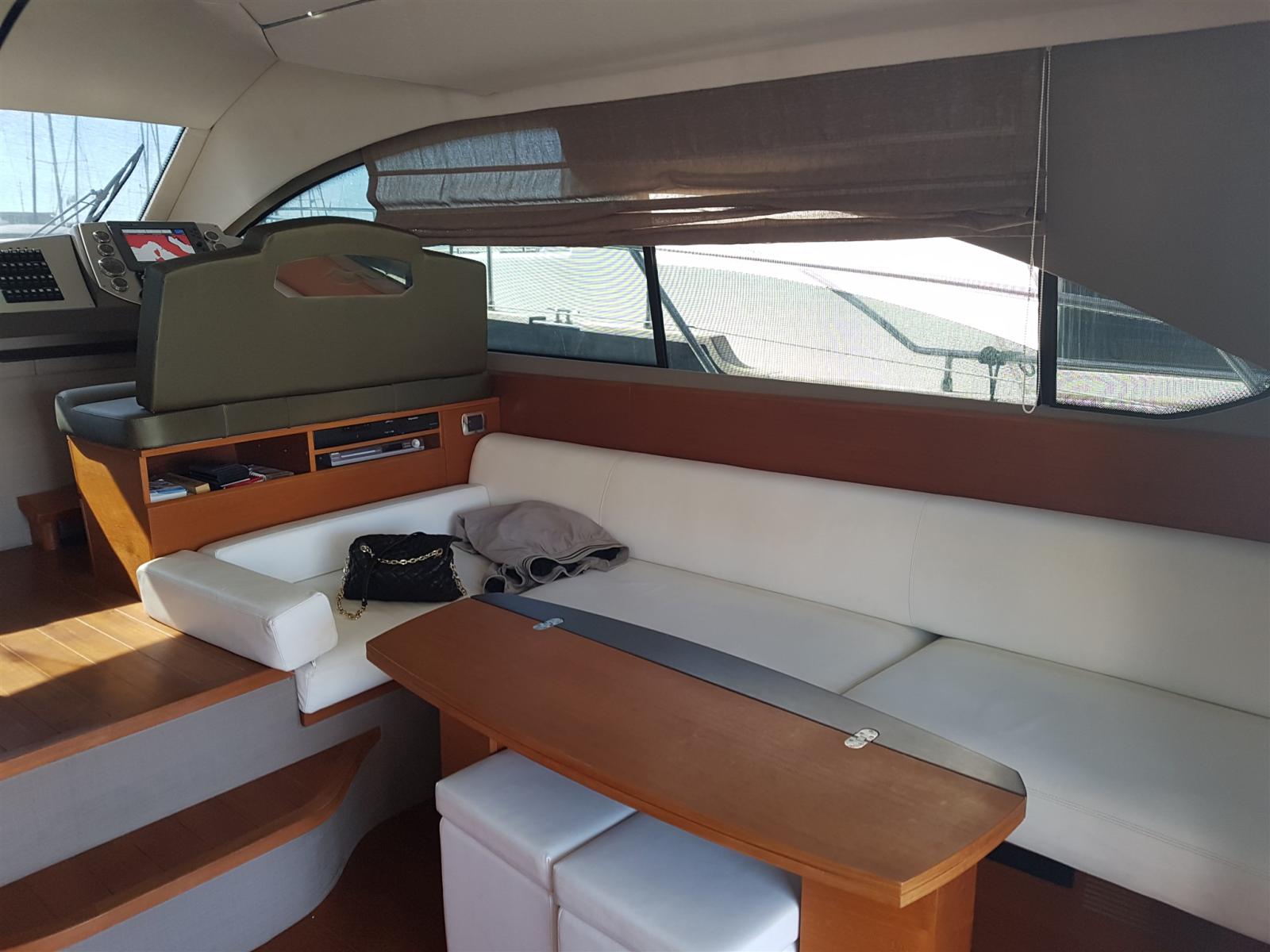 Engine Alarm, Water pressure pump, Teak Side Decks, Deck Shower, Hydraulic Flaps, Courtesy Lights, Gangway (idraulica), Platform, Automatic Bilge Pump, Entry door, Teak Cockpit, Shorepower connector, Water harbor connector system, Voltage Rectifier, Rollbar, Electric Windlass, swimming ladder, Horn, Stern Winches, Bow Winches.
