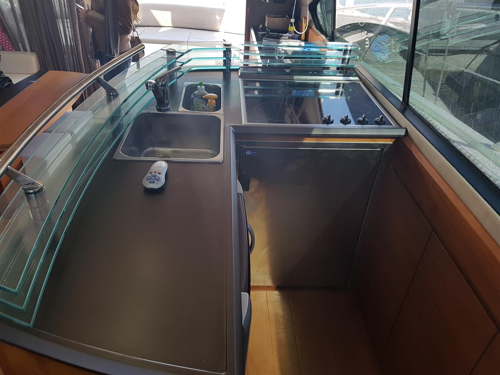 Galley, Deck Refrigerator, Ceramic hot plate.