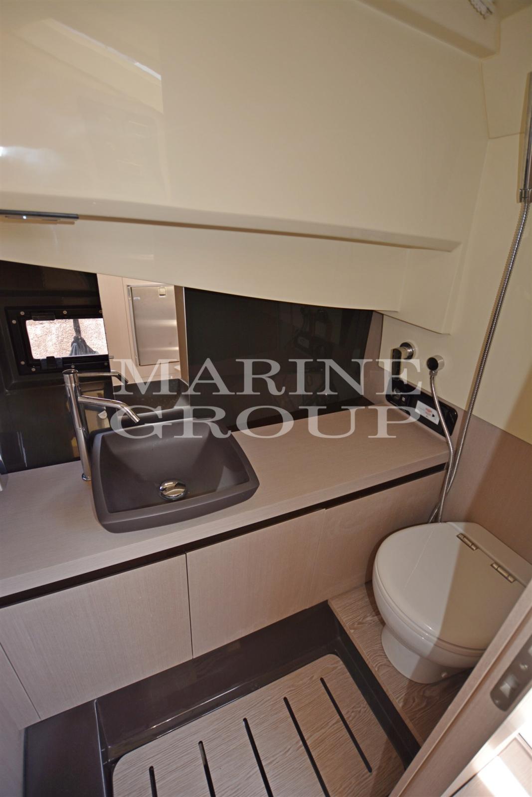 Luxurious Eclipse wall tiles; Large aft cabin, convertible forward dinette and additional equipment make the GT320 an ideal boat for relaxation and leisure; Bathroom with shower.
