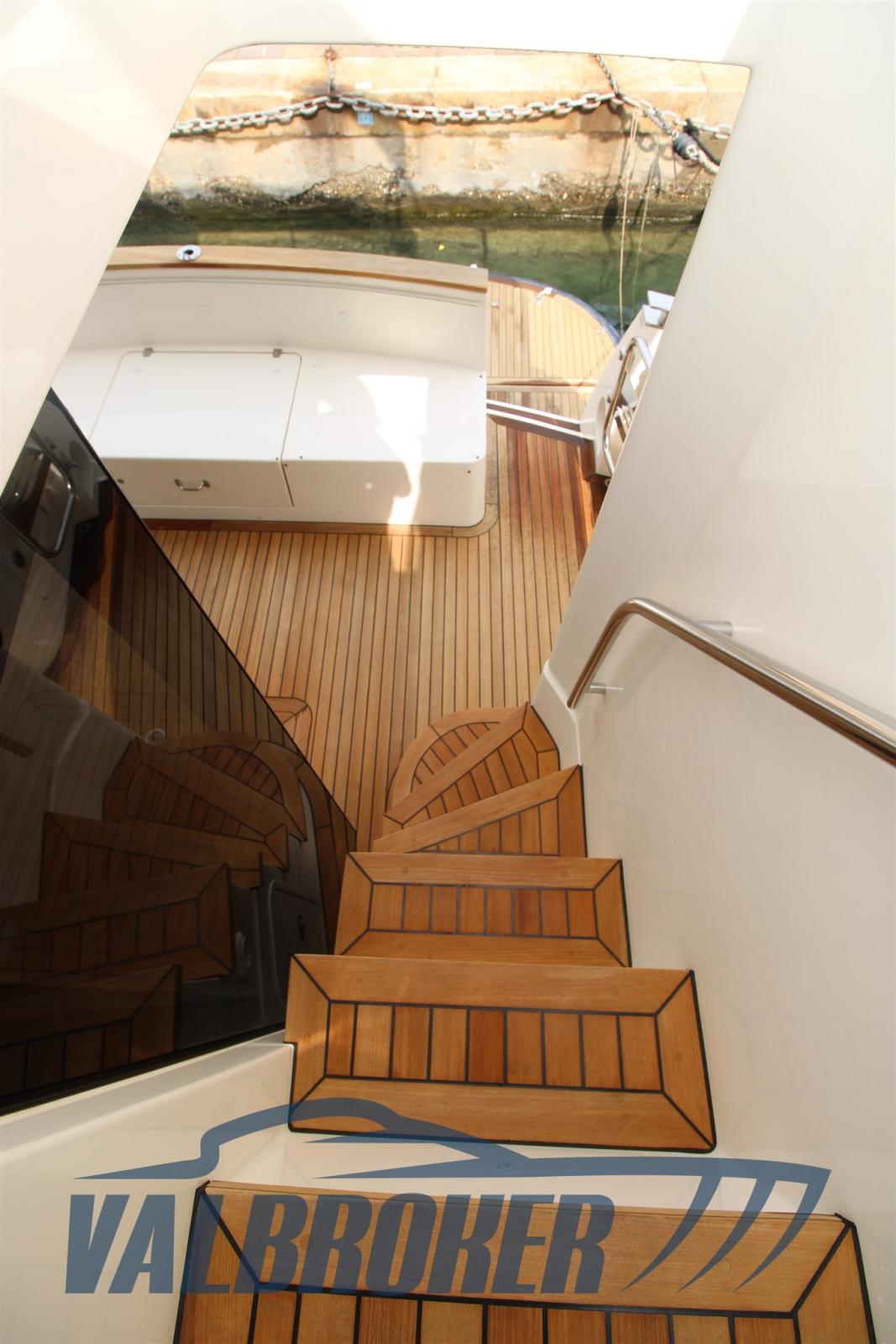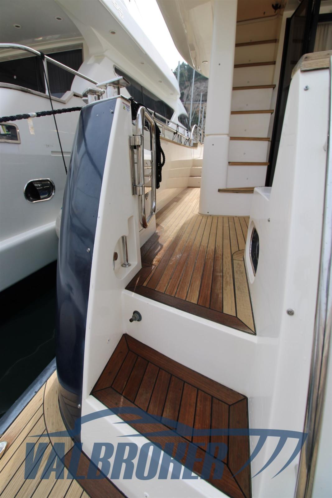 Water pressure pump, Auto-Trim (BCS), Teak Side Decks, Deck Shower, Stern Thruster (quick), Bow Thruster (quick), Directional Spotlight (Osculati), Hydraulic Flaps, Courtesy Lights, Gangway (idraulica a scomparsa), Platform (tender lift), Entry door, Side door, Teak Cockpit, Electric Windlass, 2 Stern Winches.