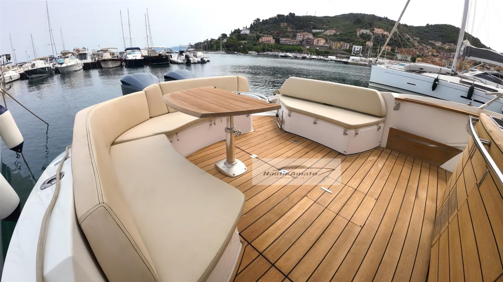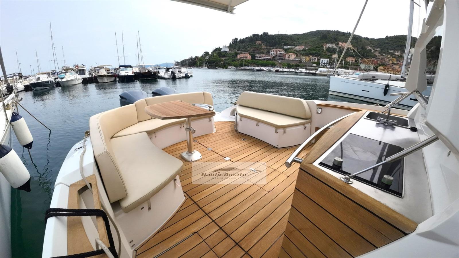 Outdoor Spaces: Large deck with sunbathing areas, perfect for relaxation or social activities. The aft area is equipped with a dining table, ideal for outdoor dining. The side opening is very attractive, useful both for going down sideways and for diving into the sea; It is also equipped with a comfortable ladder, the large outdoor kitchen completes the excellent usability of the boat.