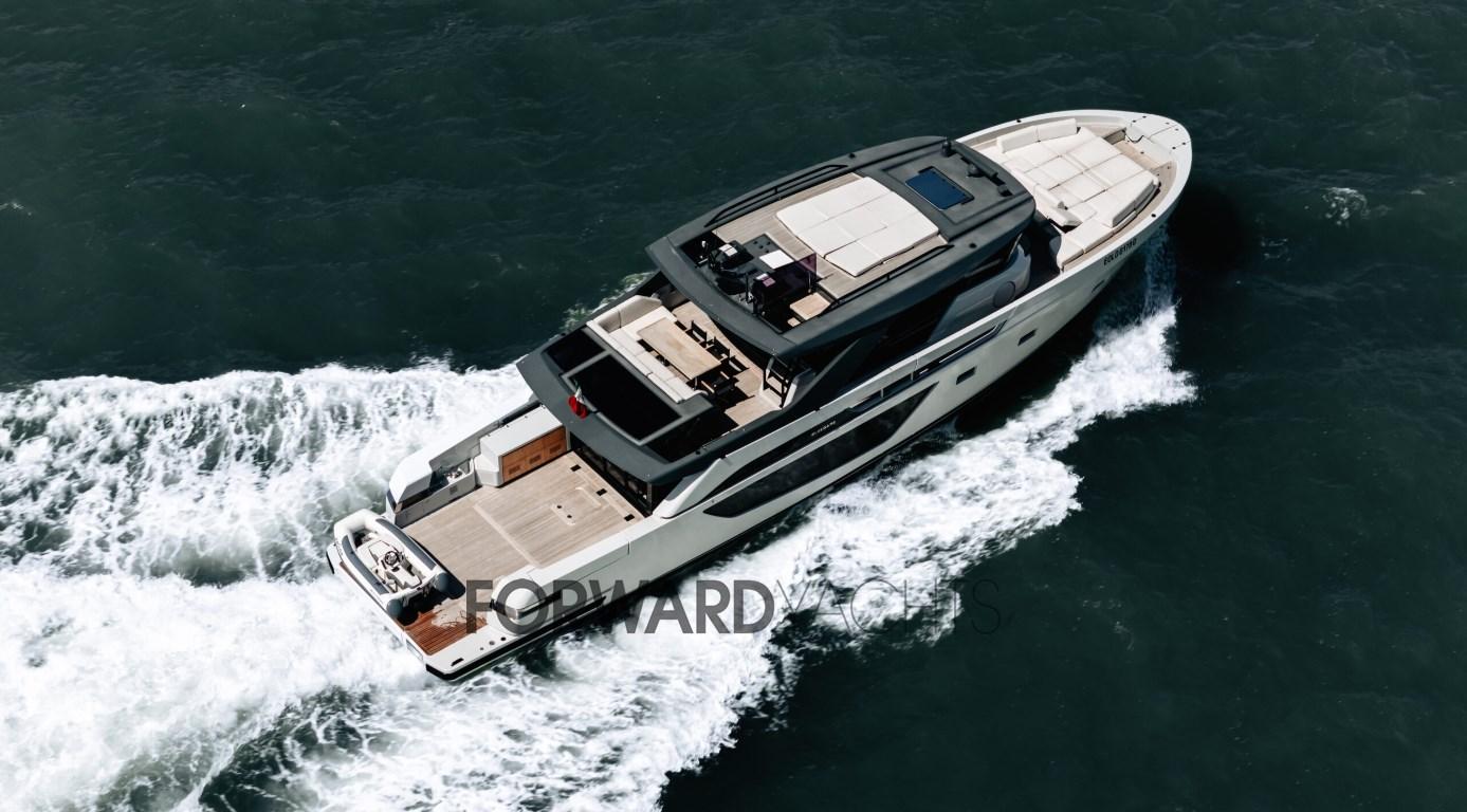 It represents a unique opportunity for those looking for a yacht with no waiting time. Equipped with 2 Volvo Penta engines and highly equipped, in particular with: Seakeeper, stern and bow thruster, 210 Lt/h watermaker, hydraulic platform, teak cockpit and walkways, tender and much more.