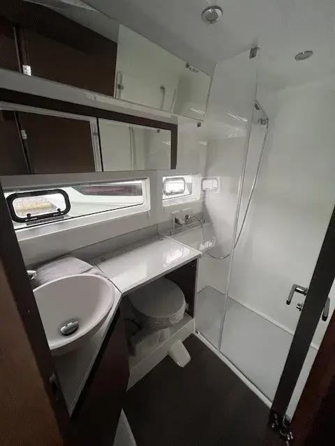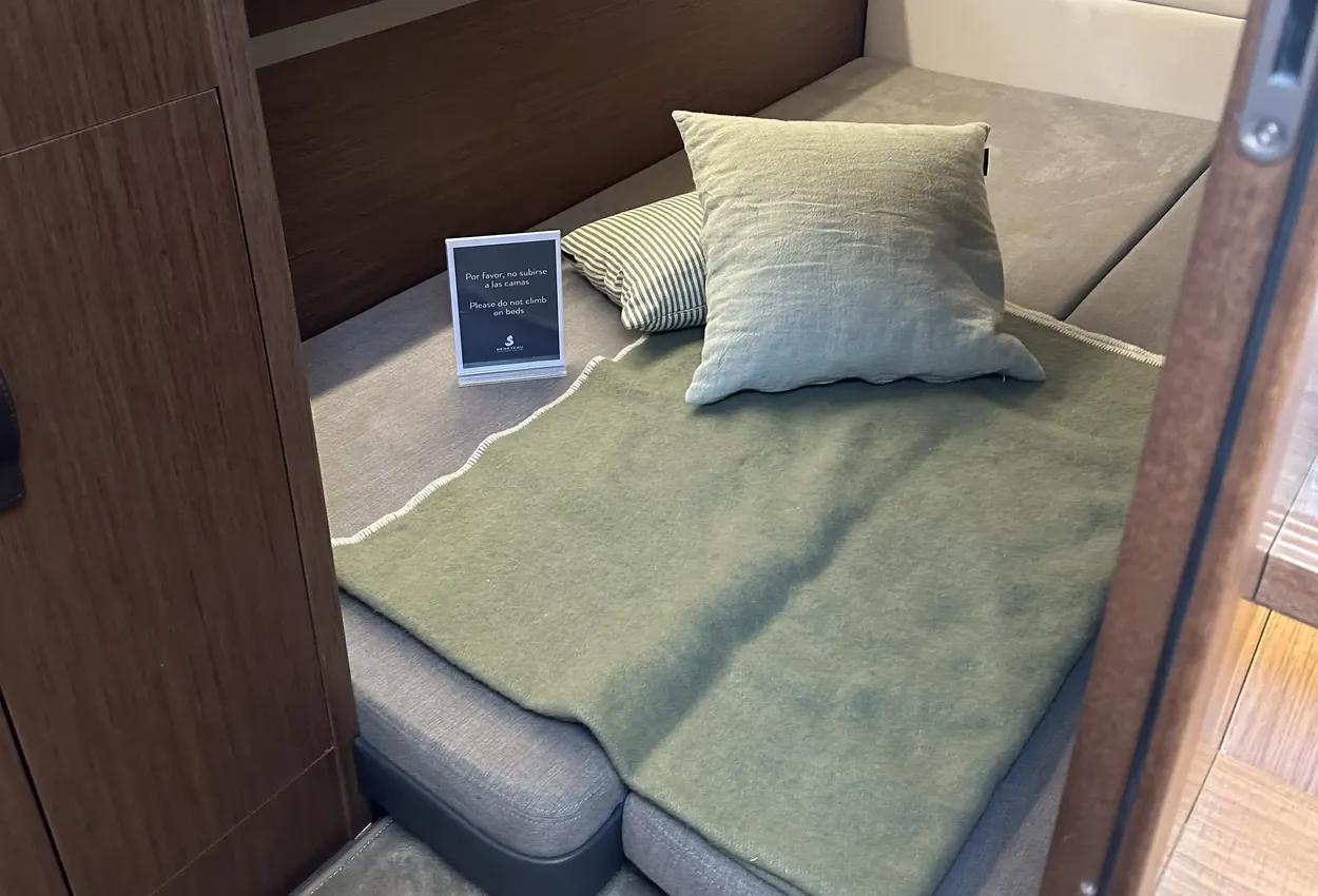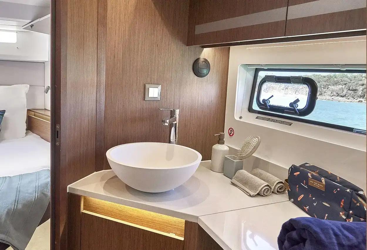 The fully fitted galley allows you to give free rein to your culinary creativity. The lounge with facing seats is a great place to enjoy good company. The indirect lighting, elegant upholstery, and lacquered furniture create a peaceful atmosphere, where you can relax and contemplate the surroundings.