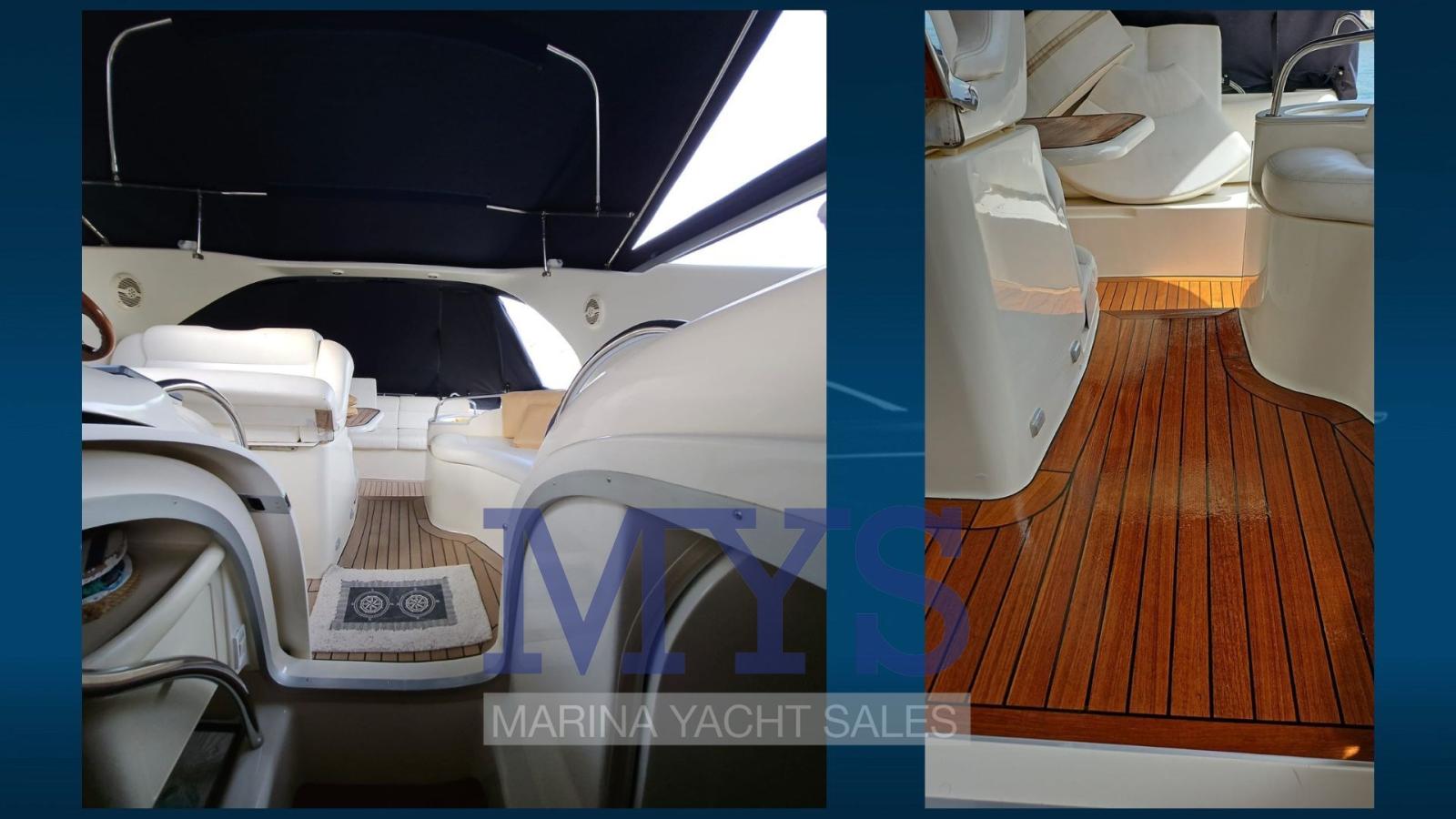 Engine Alarm, Bilge Alarm, Anchor (+ 60 mt di catena), Electric Engine Compartment Opening, Water pressure pump, Life Raft (scaduto), Auto-Trim, 5 Batteries (x 200 Ah nuove 2024), Special Colour (fascia Blu), Deck Shower, Directional Spotlight, Hydraulic Flaps, Fire Extinguishing System, Washbasin in the cockpit, Courtesy Lights, Underwater lights (Blu), Gangway (idraulica), Platform (in Teak), Automatic Bilge Pump, Manual Bilge Pump, Entry door, Teak Cockpit, Shorepower connector, Water harbor connector system, Rollbar, Electric Windlass, swimming ladder, Waste Water Purifier System, cockpit table, Living Room Foldable Table, Horn, Teak Deckhouse.