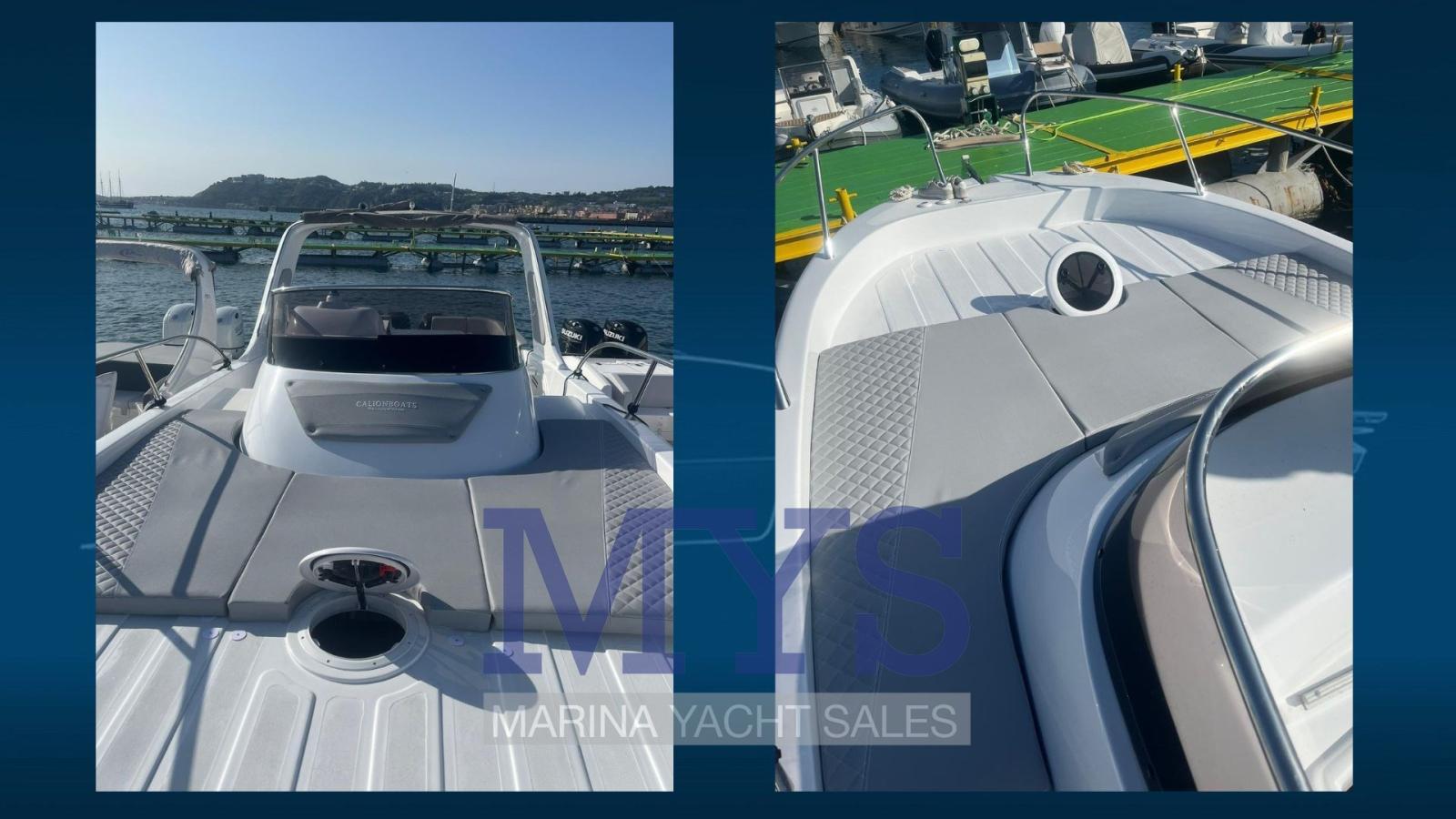 The Calionboats 33 wa is a fast and elegant boat. Its strong sporting vocation hides a heart full of comforts, starting with the two large double cabins. Driving fun and safety are guaranteed by the innovative hull with a flared bow that gives the boat exceptional stability in navigation, even in difficult sea conditions.