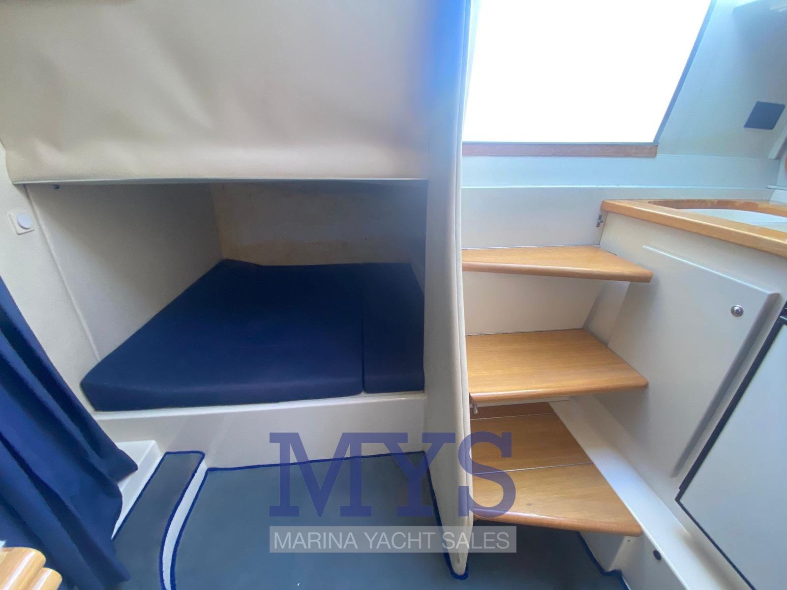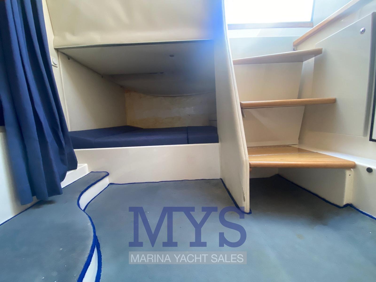 Engine Alarm, Bilge Alarm, Anchor (+ catena), Electric Engine Compartment Opening, Water pressure pump, Life Raft (scaduta), 2 Batteries, Deck Shower, Courtesy Lights, Gangway (Besenzoni), Platform, Automatic Bilge Pump, Manual Bilge Pump, Entry door, Shorepower connector, Rollbar, Electric Windlass, swimming ladder, cockpit table (idraulico Besenzoni), Living Room Foldable Table, Horn.