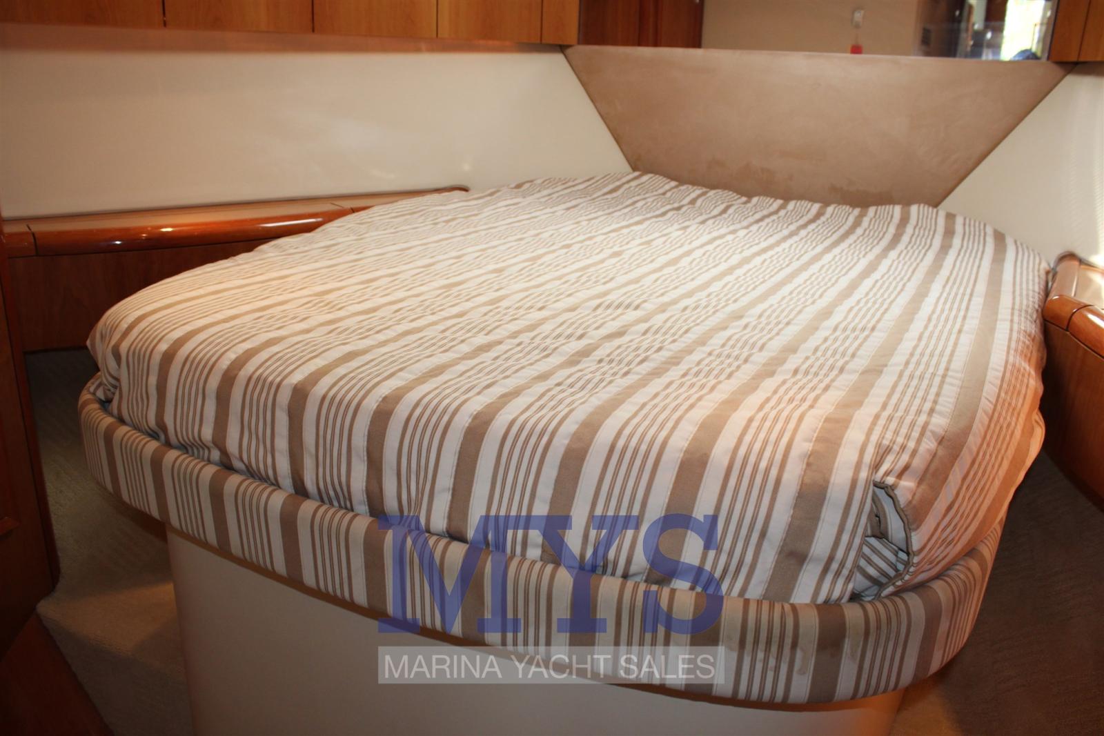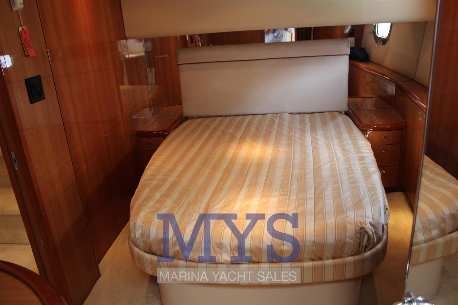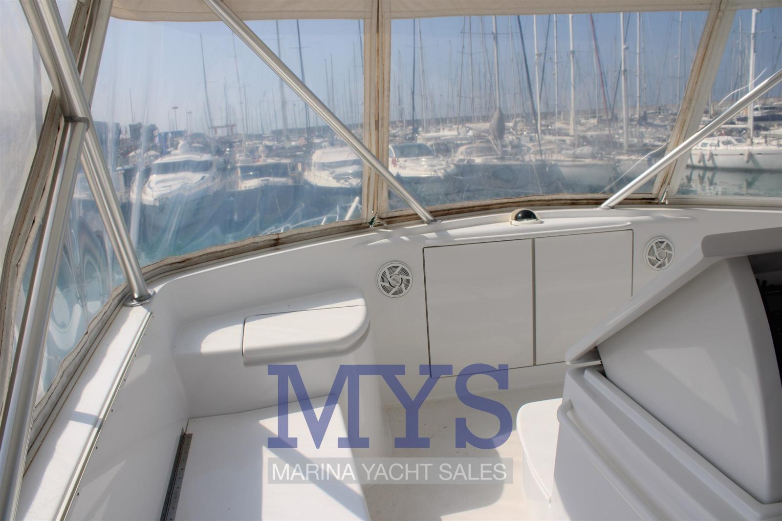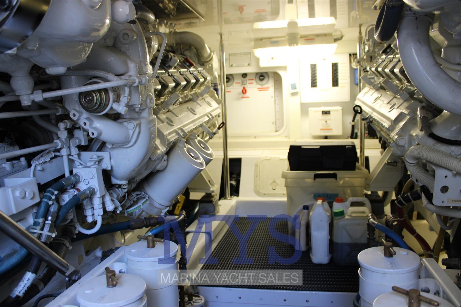 Engine Alarm, Bilge Alarm, Alternator, Water pressure pump, Folding cleats, Deck Shower, Headlights fixed on the stem, Directional Spotlight, Hydraulic Flaps, Fire Extinguishing System, Flaps Indicators, Anchor Chain Washdown, Washbasin in the cockpit, Courtesy Lights, Underwater lights, Gangway, Platform, Automatic Bilge Pump, Entry door, Shorepower connector, Water harbor connector system, Voltage Rectifier, Electric Windlass, swimming ladder, Waste Water Purifier System, Horn, Stern Winches, Bow Winches.