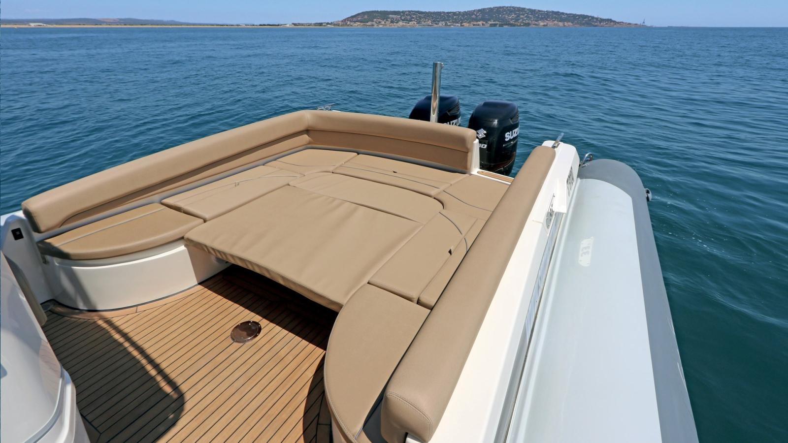 Engine Alarm, Water pressure pump, Teak Side Decks, Deck Shower, Platform (extra lunghe), Teak Cockpit, Electric Windlass, swimming ladder, cockpit table.