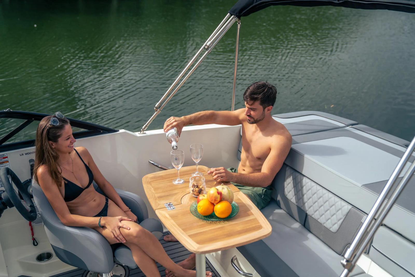 Extra passenger seat created in bow by adding an optional wind block (requires bow filler cushion)
