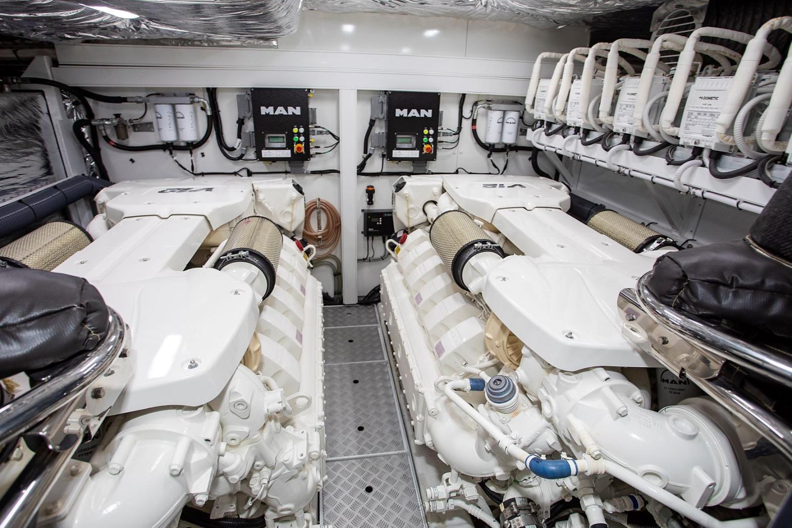 Stern thruster - bow thruster - air conditioning - galley - oven - microwave oven - refrigerator - washing machine - dryer - watermaker - grill - cockpit table - flybridge table - two Onan 19 and 11 kW generators - double helm station - third stern control station - stabilizer fins (Sleipner VF800) - hydraulic gangway - hydraulic stern bridge - mosquito nets - LCD TV - SAT TV antenna.
