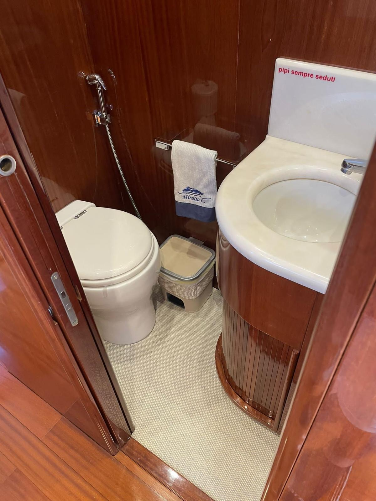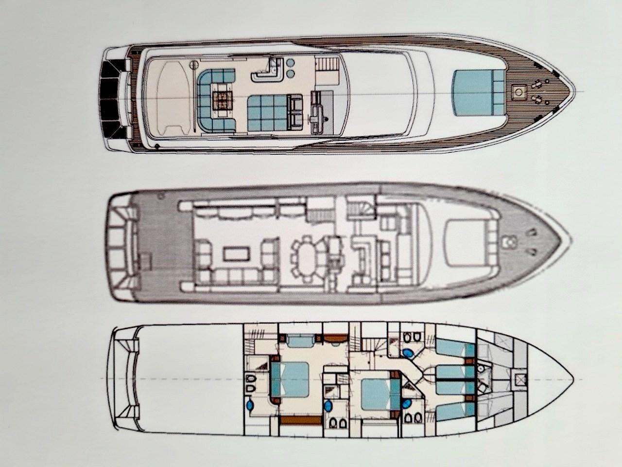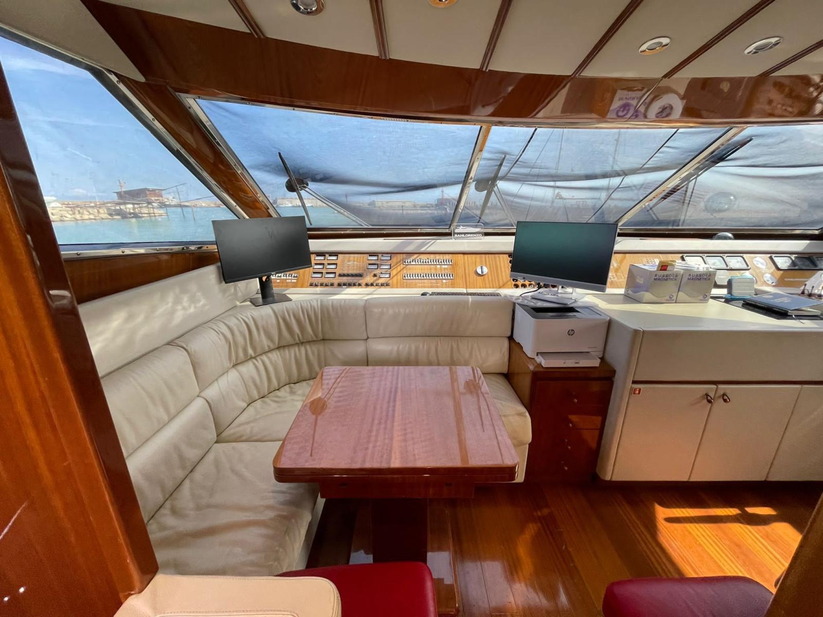 Works 2019/2020: access to the engine room from the stern - replacement of all toilets with modern Tecma - all LED lights - disassembly, verification, balancing of shaft lines (axles and stands) and propellers - replacement of the bushings of the trestles - cleaning of the heat exchangers of the main engines - overhaul of turbines - construction of two side doors to the cockpit for access on board when mooring on the side - replacement of all batteries (engines, services, generators) - replacement of all kitchen furniture and appliances - replacement of the two mooring anchors and related chains - construction of a fixed bimini top on the flying bridge helm station - replacement of all grey and black water tanks - renovation of crew accommodation - installation of a new Idromar watermaker - replacement of throttles with electronics - installation of stern thruster - new chargers and inverters - overhaul of all On-board pumps - Third control station at the stern plus fourth wireless station - Replacement of all seacocks and valves - Replacement of hydraulic seals Axles.