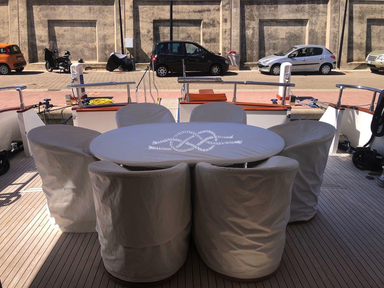2023: replacement of all on-board electronics with Raymarine (GPS/Plotter, echo sounder, 72 mg radar, autopilot), installation of SAT TV KVH antenna, installation of SAT telephone.
