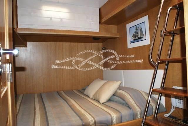 2015 works: replacement of service batteries, hull and superstructure polishing, 14 coats of cups on the external woods, cutting engines and generators, transformation of two aft guest cabins into a single cabin with a double bed.