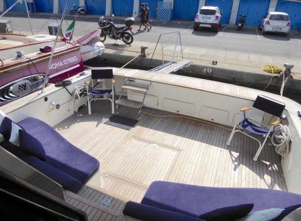 Works 2019/2020: battery change - rubberization of the deck - renovation of the teak deck of the flying and aft bridge - overhaul of the bow thruster with replacement of the dedicated batteries - landing of the generator for extraordinary overhaul - installation of the second fan coil in the saloon.