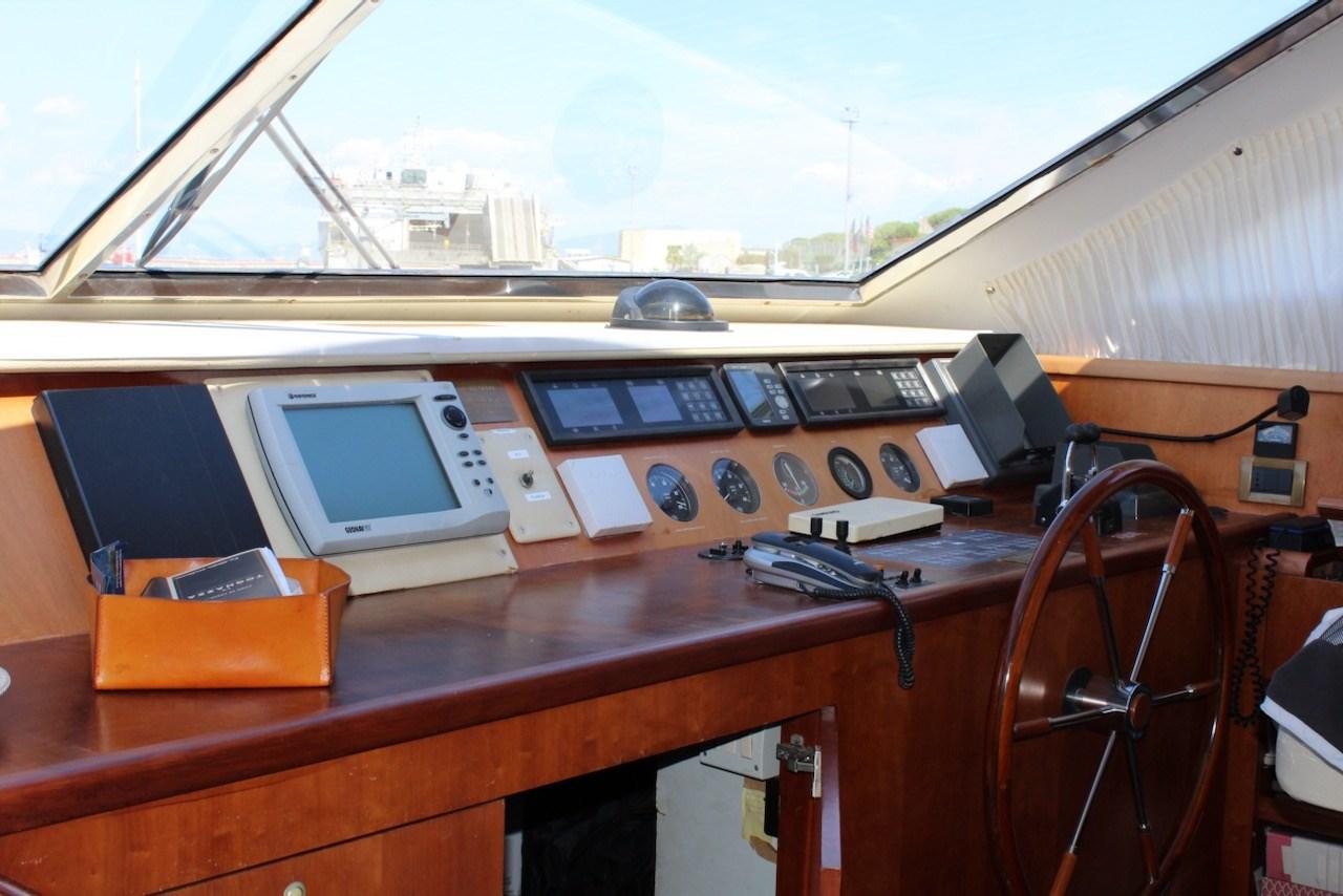 Engine Alarm, Water pressure pump, Teak Side Decks, Deck Shower, Hydraulic Flaps, Tender Crane, Fire Extinguishing System, Courtesy Lights, Gangway, Platform, Entry door, Side door, Teak Cockpit, Shorepower connector, Water harbor connector system, Electric Windlass, swimming ladder, Saddles for tender, cockpit table, Stern Winches.
