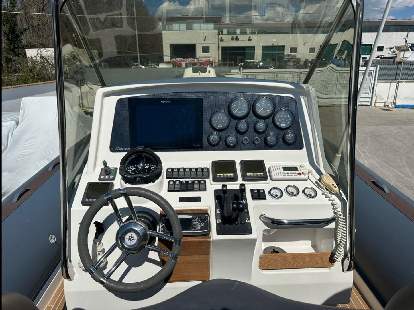 Raymarine GPS/Plotter - Raymarine echo sounder - FPT engine control instrument - VHF - FPT vessel view - Jolly Drive transmission control instrument.