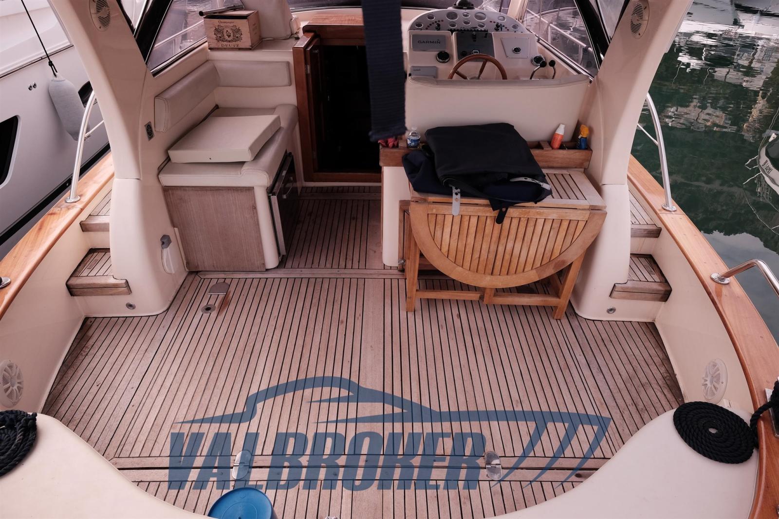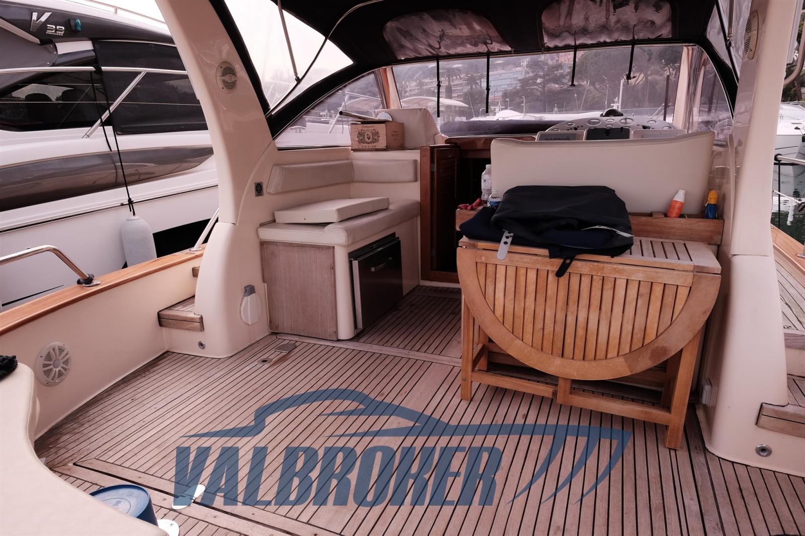 Auto-Trim, 2 Batteries, Teak Side Decks, Special Colour (blu), Twin Steering, Gangway (Besenzoni inox), Platform (maggiorata), Teak Cockpit, Rollbar, Electric Windlass, swimming ladder, cockpit table (teak).