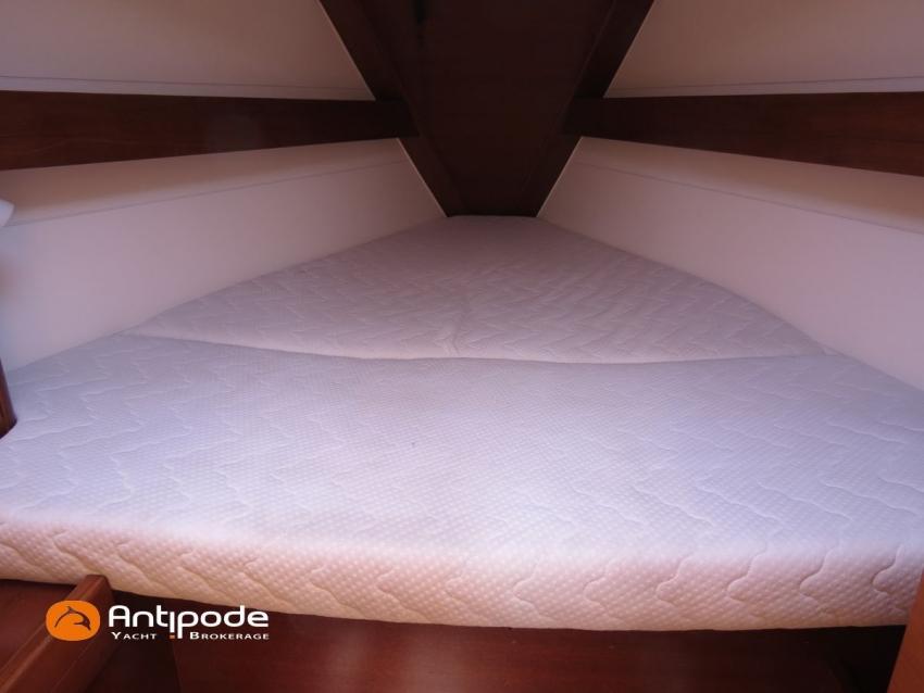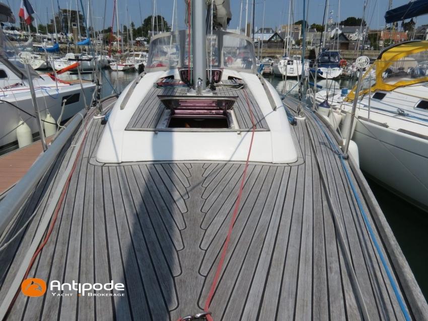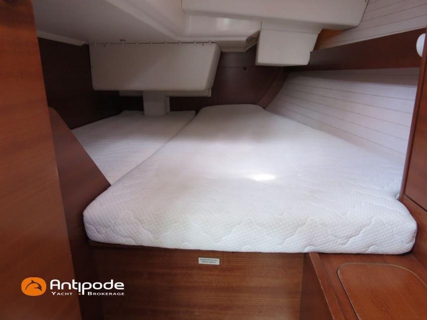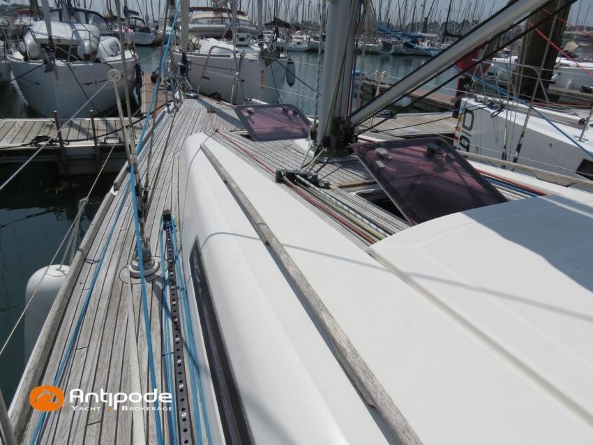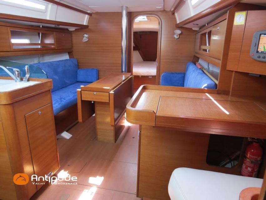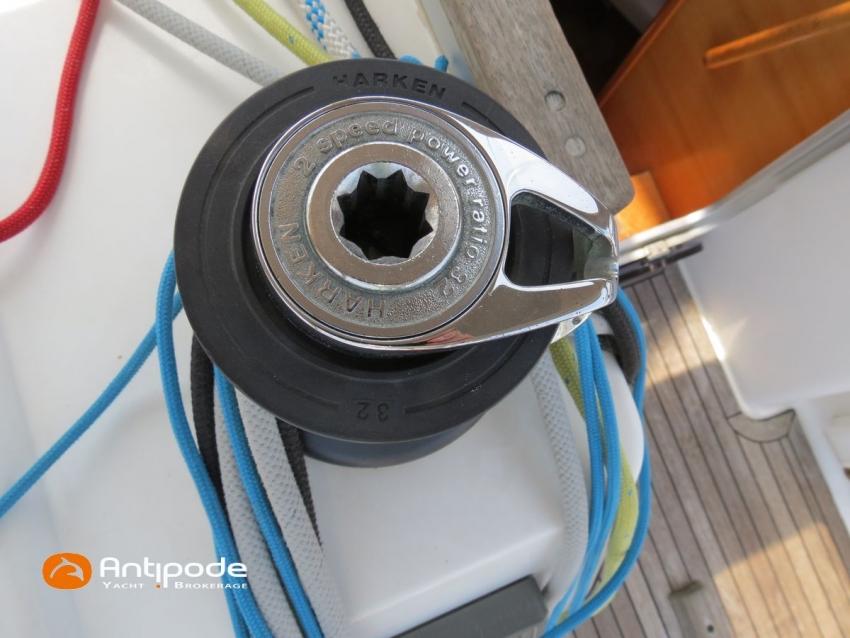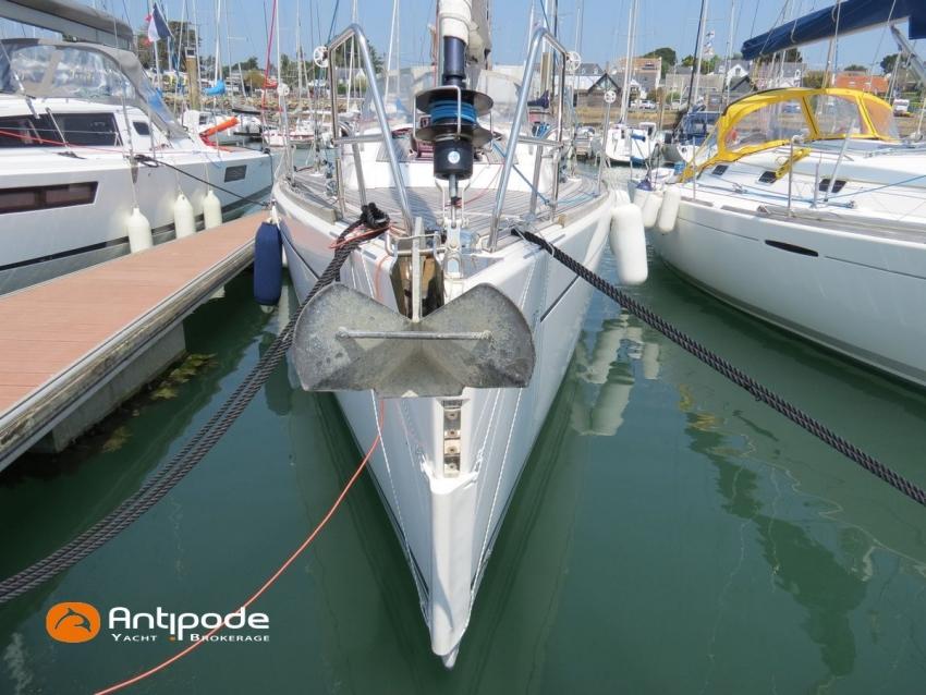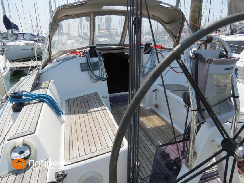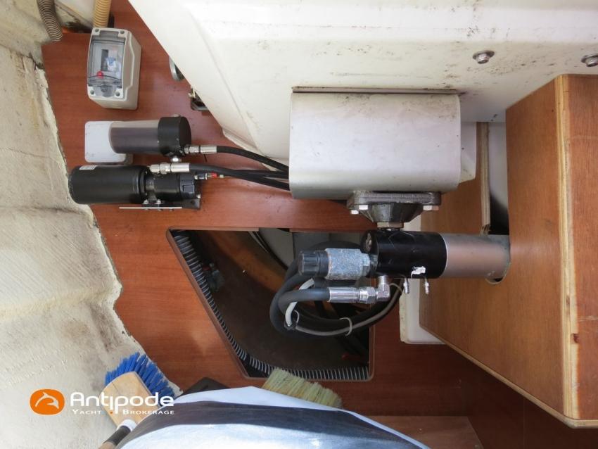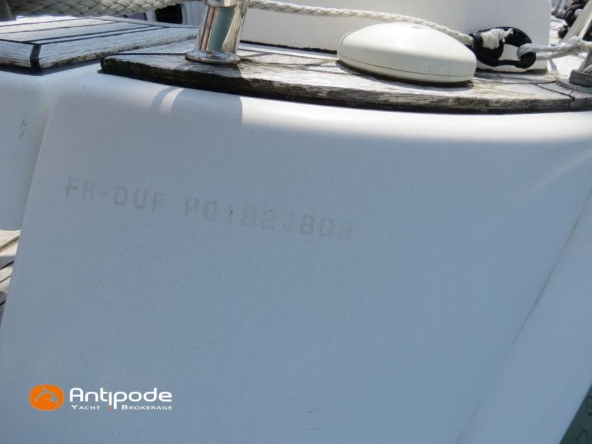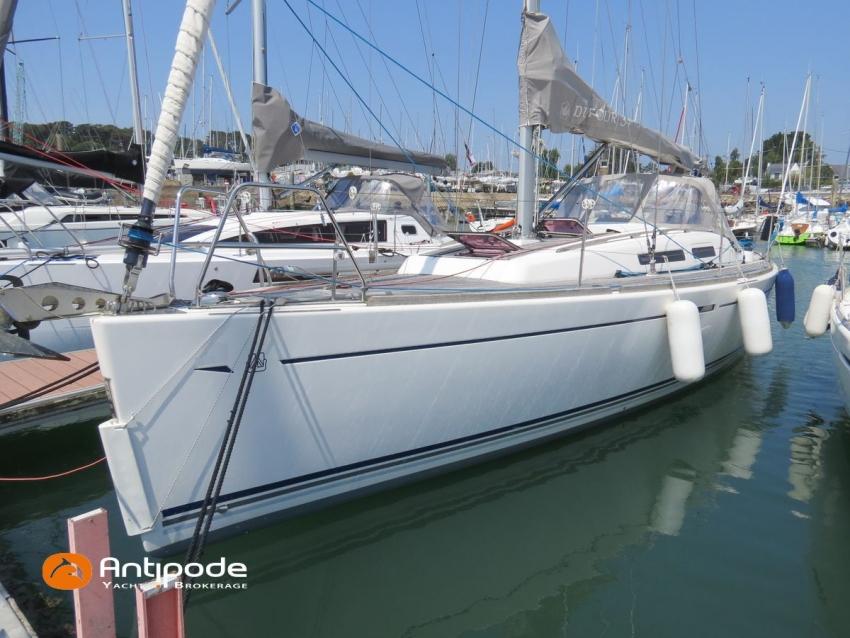 DUFOUR 34 E PERFORMANCE, 2009, VOLVO D1-30*, 29 hp (1425 hrs), Interior layout version 1 forward cabin, 1 aft cabin, 1 heads (toilets + shower), Cockpit trunk access from both cockpit and bathroom, 2 cockpit primary genoa winches - Harken 44ST, 2 roof winches for adjustment and sail handling - Harken 32ST, Cockpit mounted main sheet traveller - Harken, Teak deck passageway, Teak top roof, Teak slatted cockpit floor, Teak cockpit seats, Leather covered stainless steel wheel steering, Wheel cover, Cockpit sprayhood (2020), Electric windlass, Semi full batten main sail, triradial cut, DCX clothes, very few uses (2021), Full batten main sail, crosscut (serviced 2024), Single line main sail reefing system, Main sail lazy jacks, Main sail classic cover, Genoa roller furling with above deck drum - Facnor RX165, Furling genoa, crosscut, Technique Voile (2022), Furling genoa, triradial cut, DCX clothes (very few uses) - Technique Voile (2021), Storm jib (storm bag), Genoa anti-UV protection cover, Aluminium spinnaker pole, Triradial classic spinnaker - Technique Voile, Spinnaker snuffer, Adjustable backstay, Raymarine in board autopilot, Raymarine ST 60 navigation system, GPS and chartplotter (nav station) - Raymarine A65, DSC AIS VHF at chart table - Radio Ocean RO4800 (2012), Fridge unit 12 V (top opening door), Hot and cold pressurized water, 220 V shore power + battery charger, Service batteries - AGM - 3 x 107Ah (2014), Interior 220 sockets, Holding tank, Hot and cold cockpit shower, Sea water foot pump, Liferaft - 6 men, from 2020 (next service date 2026), Anchor + 30m lenght of chain + 20m lenght of rope, 6 x inflatable life jackets, Fenders and warps, Dinghy - Bombard AX3 (2011), Outboard engine - Yamaha 4 Str - 2.5Hp, Located Brittany. For more information or to make an appointment for a visit, contact : Jean-Baptiste Lemaire +33 6 10 25 00 03 - jb@antipode-yachts.com