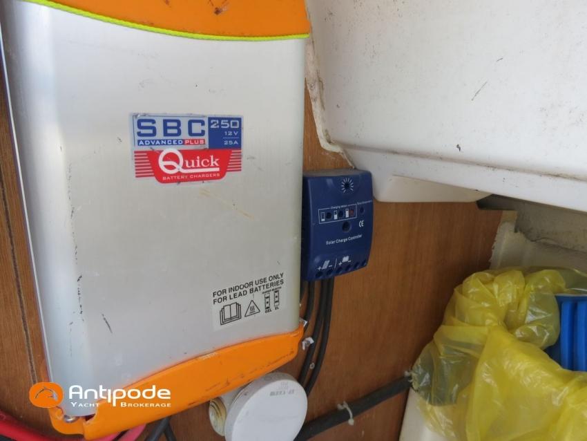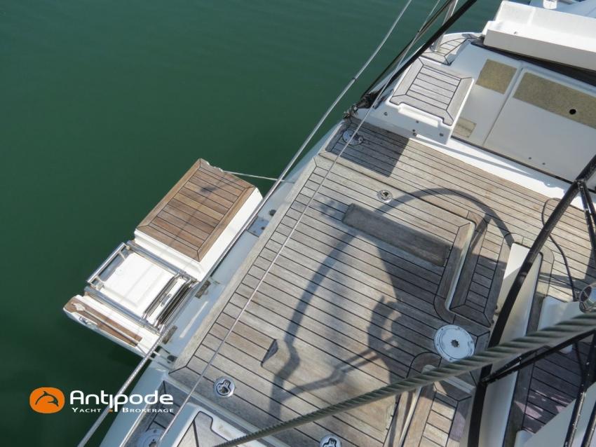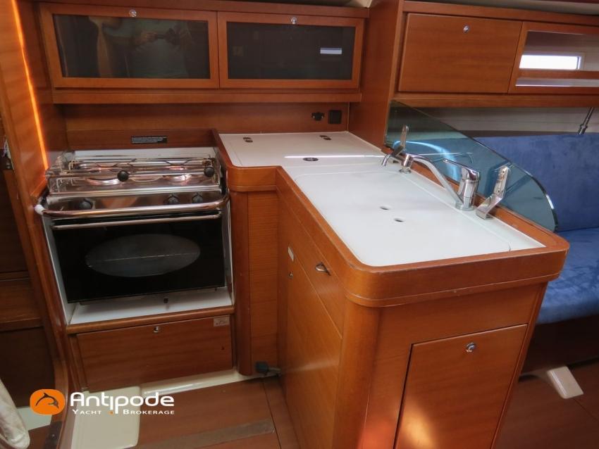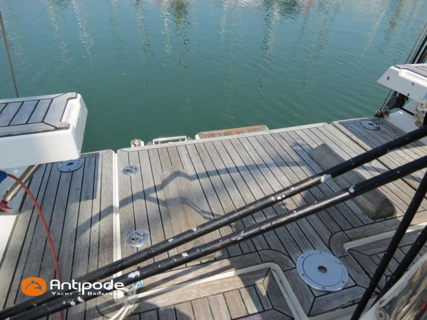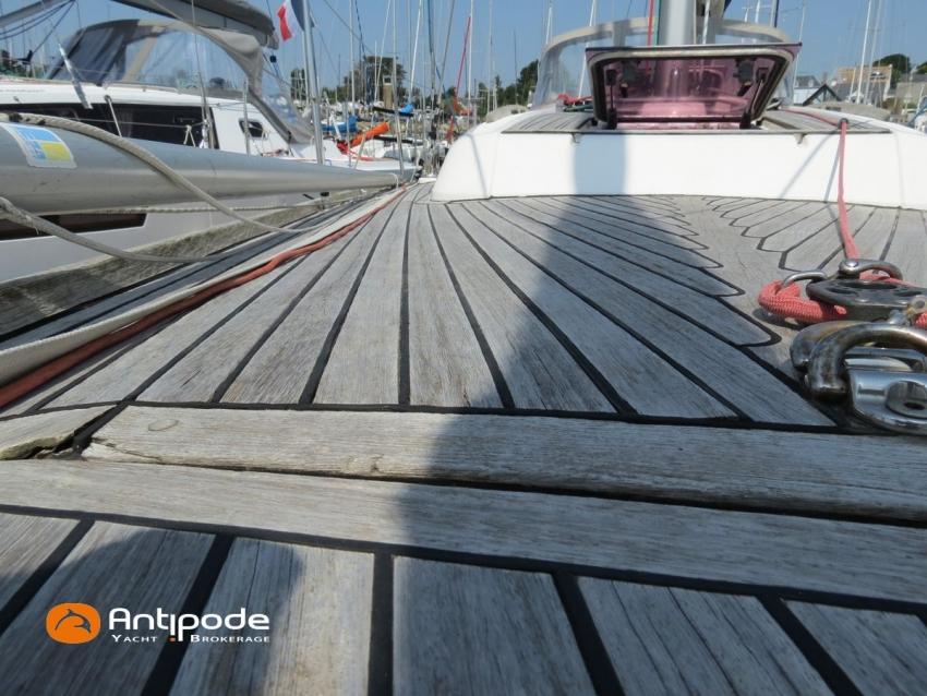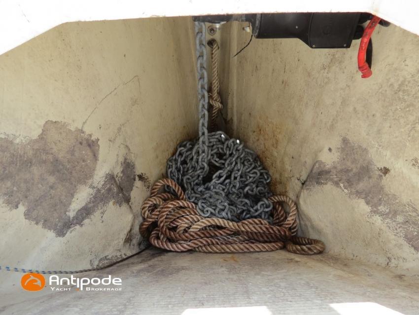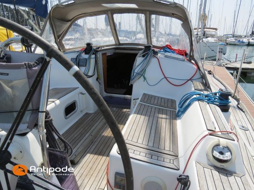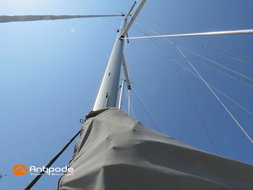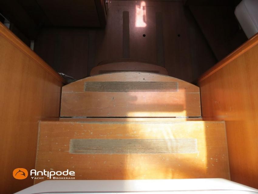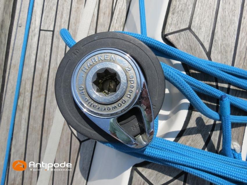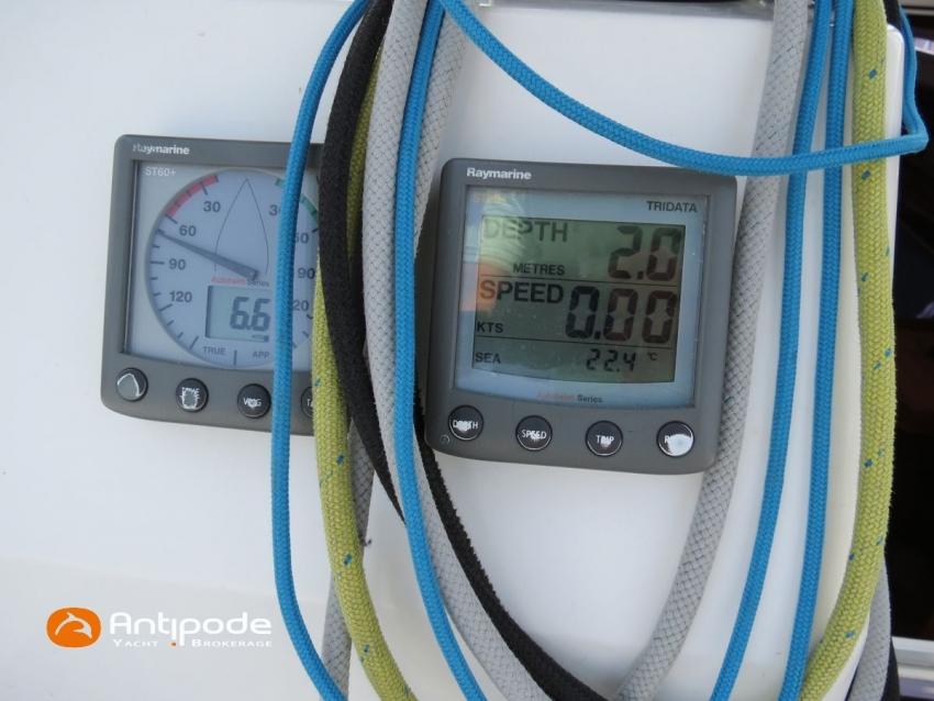 DUFOUR 34 E PERFORMANCE, 2009, VOLVO D1-30*, 29 hp (1425 hrs), Interior layout version 1 forward cabin, 1 aft cabin, 1 heads (toilets + shower), Cockpit trunk access from both cockpit and bathroom, 2 cockpit primary genoa winches - Harken 44ST, 2 roof winches for adjustment and sail handling - Harken 32ST, Cockpit mounted main sheet traveller - Harken, Teak deck passageway, Teak top roof, Teak slatted cockpit floor, Teak cockpit seats, Leather covered stainless steel wheel steering, Wheel cover, Cockpit sprayhood (2020), Electric windlass, Semi full batten main sail, triradial cut, DCX clothes, very few uses (2021), Full batten main sail, crosscut (serviced 2024), Single line main sail reefing system, Main sail lazy jacks, Main sail classic cover, Genoa roller furling with above deck drum - Facnor RX165, Furling genoa, crosscut, Technique Voile (2022), Furling genoa, triradial cut, DCX clothes (very few uses) - Technique Voile (2021), Storm jib (storm bag), Genoa anti-UV protection cover, Aluminium spinnaker pole, Triradial classic spinnaker - Technique Voile, Spinnaker snuffer, Adjustable backstay, Raymarine in board autopilot, Raymarine ST 60 navigation system, GPS and chartplotter (nav station) - Raymarine A65, DSC AIS VHF at chart table - Radio Ocean RO4800 (2012), Fridge unit 12 V (top opening door), Hot and cold pressurized water, 220 V shore power + battery charger, Service batteries - AGM - 3 x 107Ah (2014), Interior 220 sockets, Holding tank, Hot and cold cockpit shower, Sea water foot pump, Liferaft - 6 men, from 2020 (next service date 2026), Anchor + 30m lenght of chain + 20m lenght of rope, 6 x inflatable life jackets, Fenders and warps, Dinghy - Bombard AX3 (2011), Outboard engine - Yamaha 4 Str - 2.5Hp, Located Brittany. For more information or to make an appointment for a visit, contact : Jean-Baptiste Lemaire +33 6 10 25 00 03 - jb@antipode-yachts.com