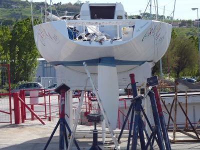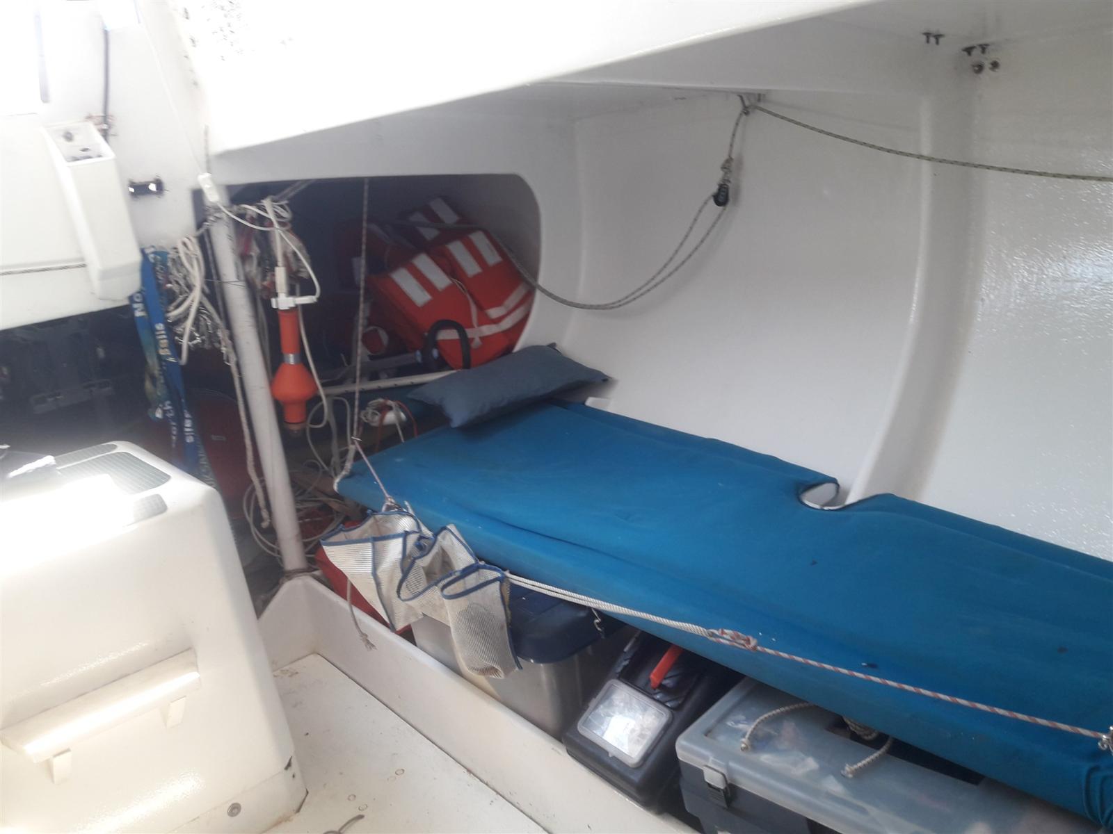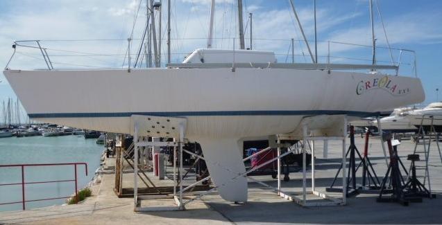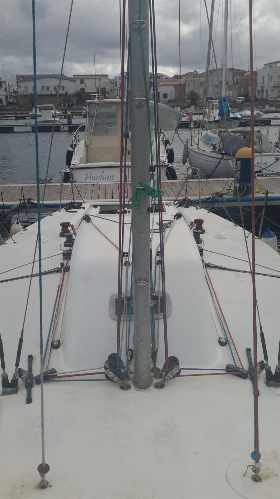 in very few examples of which this seems to be the only one on the market today. 4 beds, chemical toilet, autopilot and wind station. Equipped with about 15 sails, some of which are practically new in Kevlar and 2 spinnaker poles that reach approximately the value of the boat itself. Rigging redone in 2016. Harken and Ronstan deck equipment. 2 shapes per socket. 1 handcrafted ladder. Volvo-Penta 18 hp sail drive engine with folding propeller remanufactured in 2021