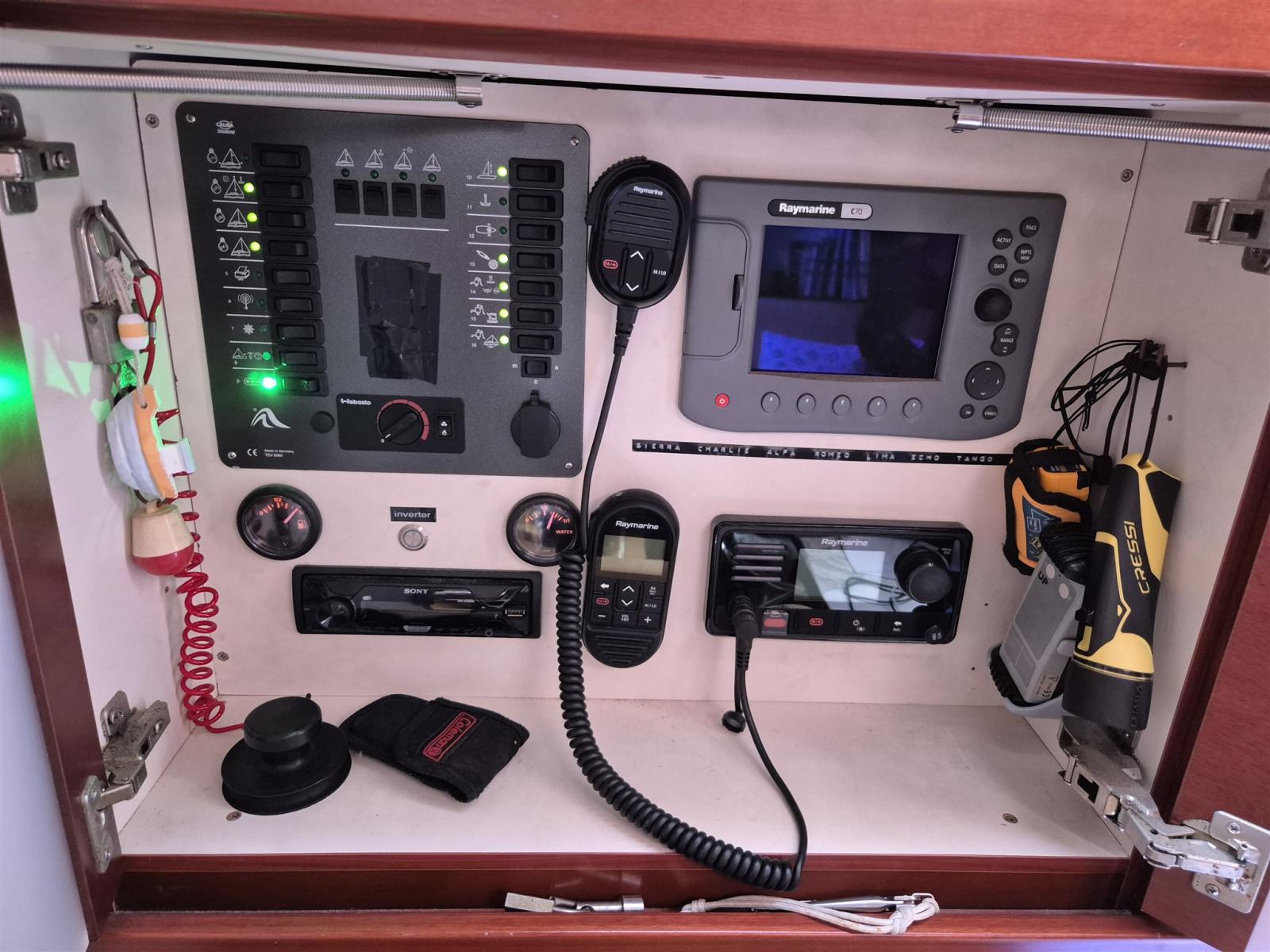 Raymarine VHF charting and double wireless charging station in cockpit