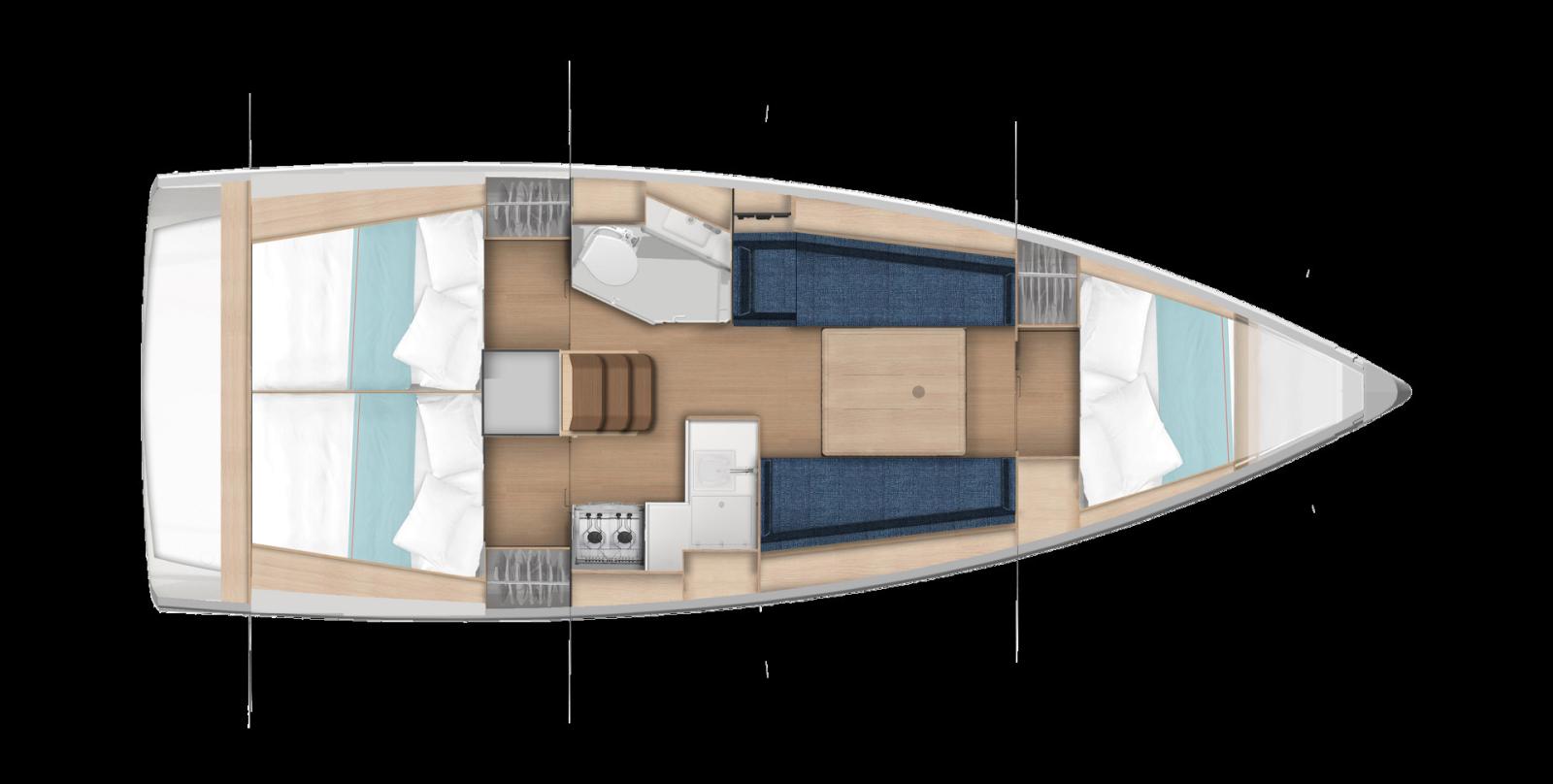Smooth movement and maneuverability, thanks in particular to the sloping side decks that remove all obstacles, make sailing smooth and easy.