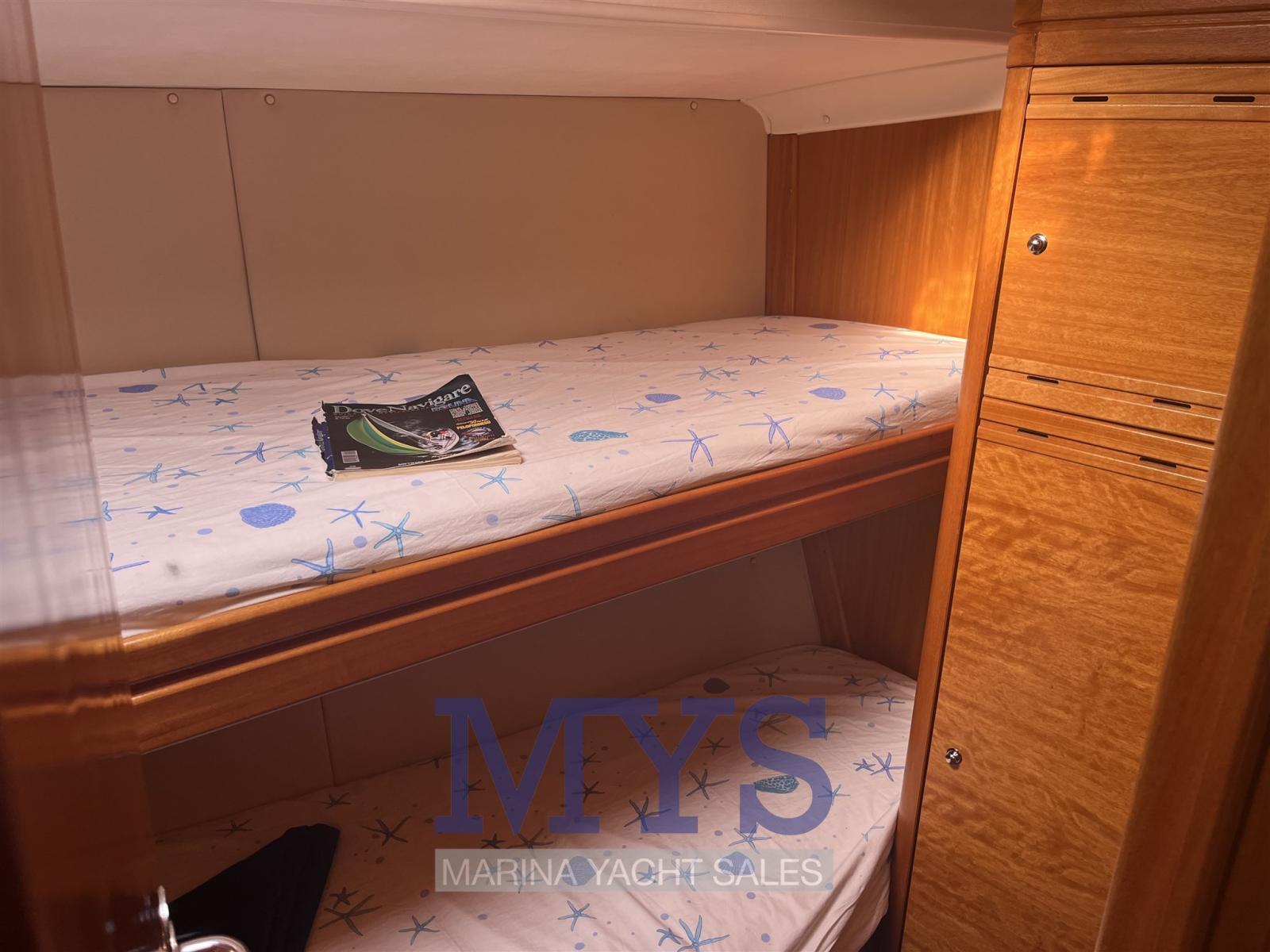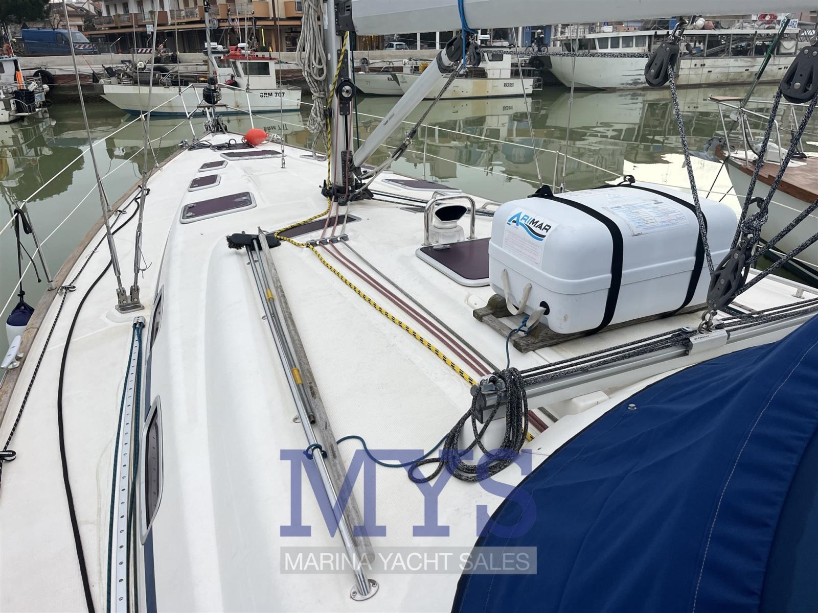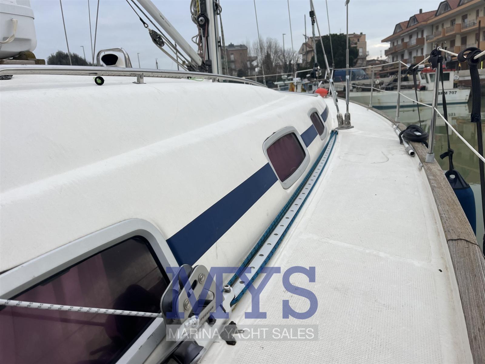 Anchor (CQR 27 kg - 100 mt di catena da 10 mm), Water pressure pump, Battery charger (25 ah), Deck Shower, Courtesy Lights, Gangway, Manual Bilge Pump, Teak Cockpit, Electric Windlass, Strand rigging, swimming ladder, cockpit table, 4 Winch, 2 Winch Electric (Quelli posizionati vicino alla timoneria).