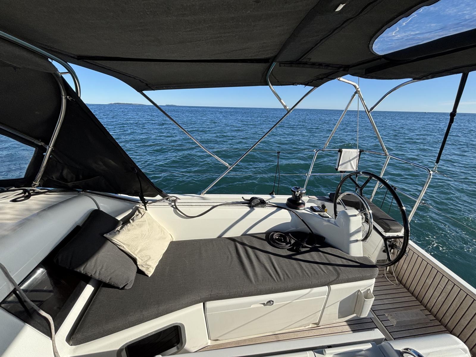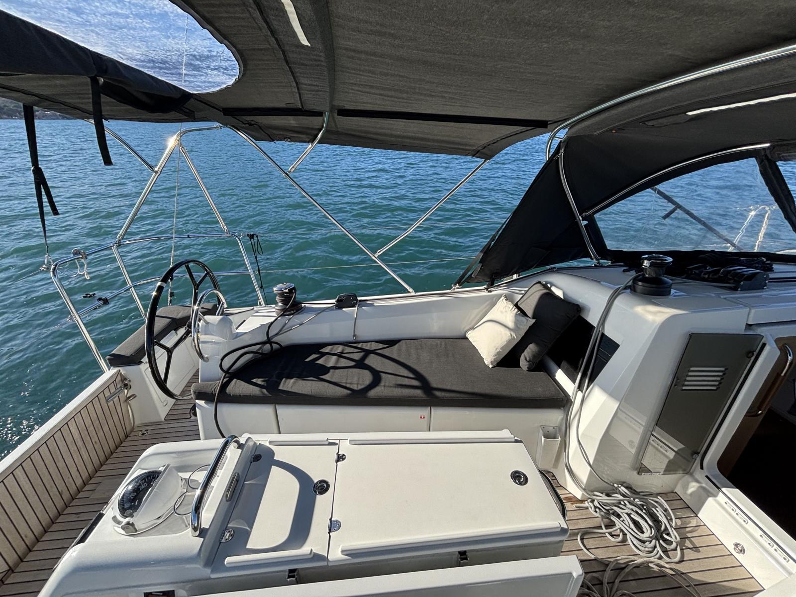 Teak deck cockpit