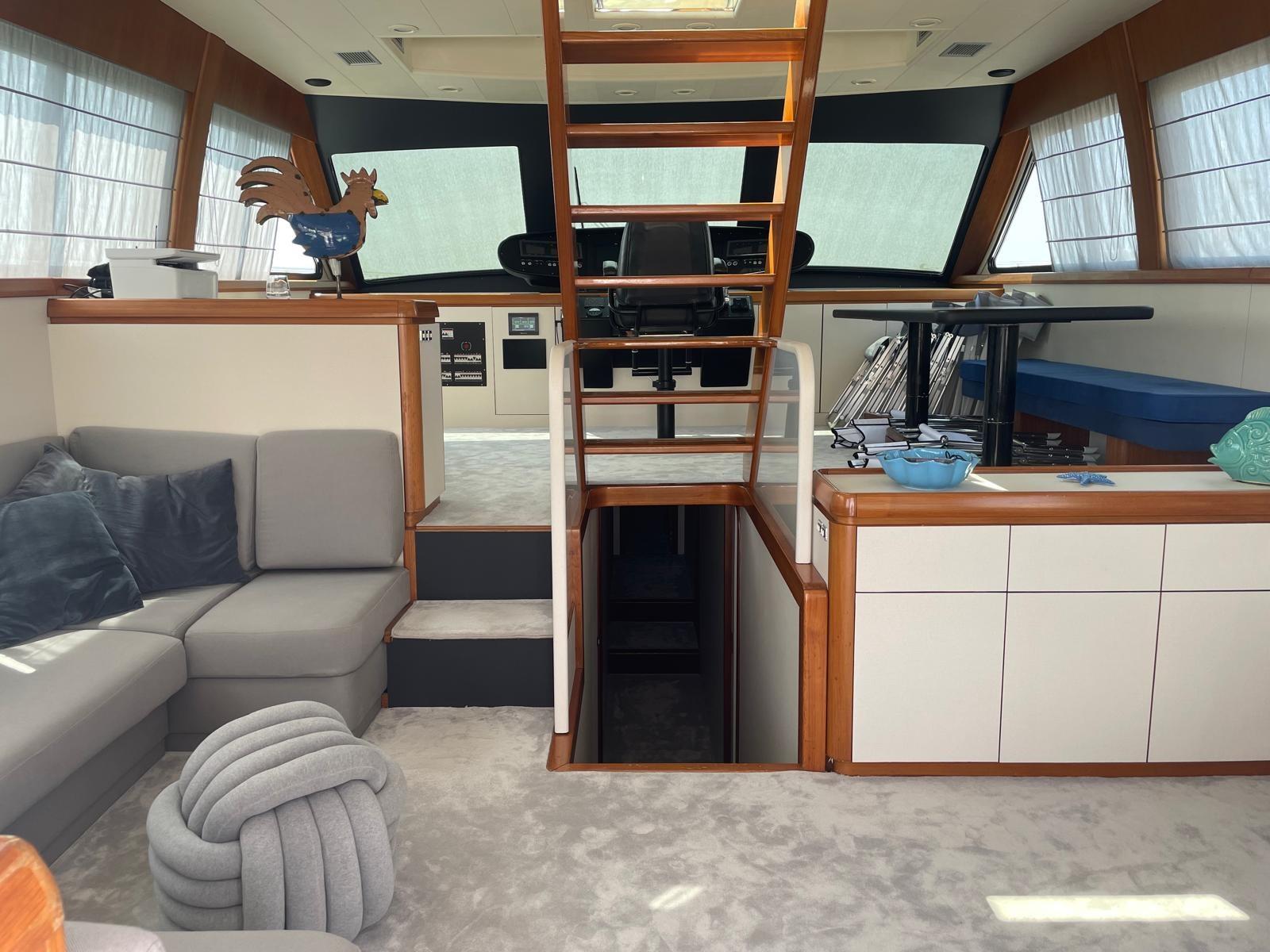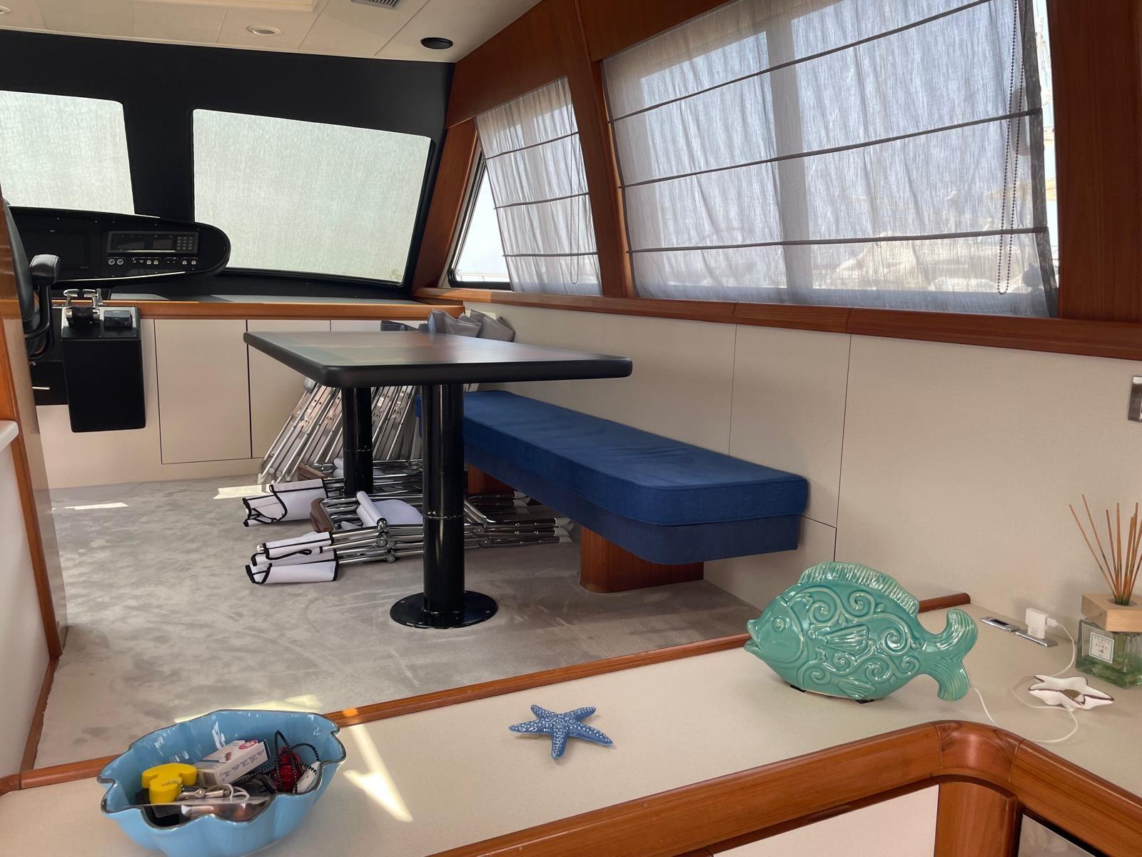 Engine Alarm, Bilge Alarm, Alternator, Water pressure pump, Draining System, Deck Shower, Twin Steering, Directional Spotlight, Hydraulic Flaps, Tender Crane, Fire Extinguishing System, Flaps Indicators, Gangway, Platform, Entry door, Shorepower connector, Water harbor connector system, Rollbar, Electric Windlass, swimming ladder, Saddles for tender, cockpit table, Tender, Horn, Stern Winches.