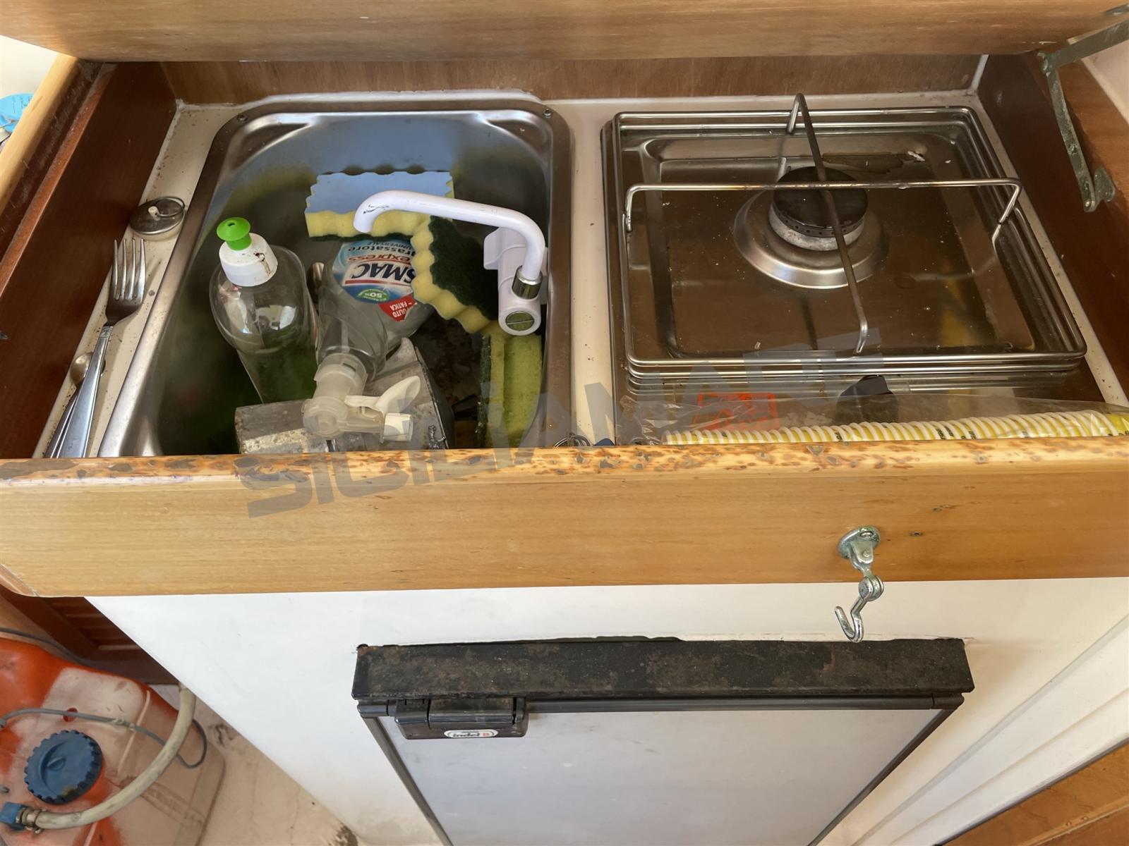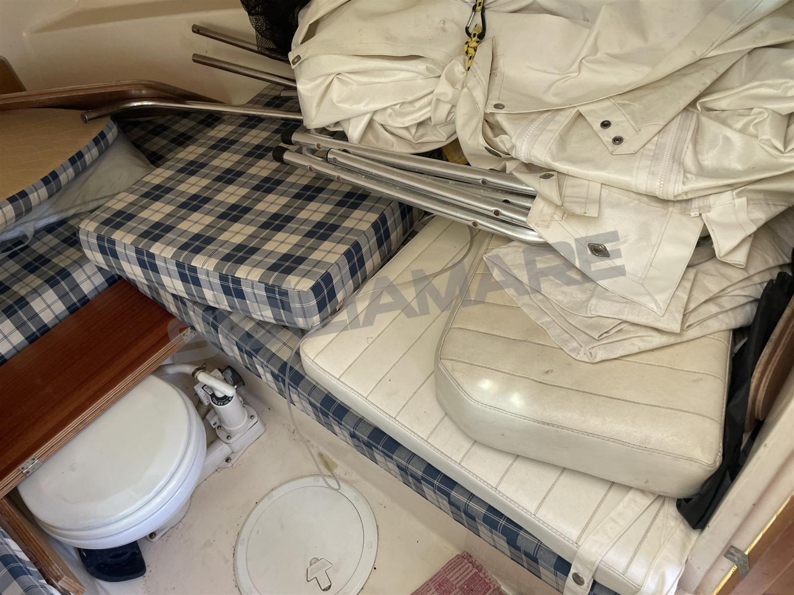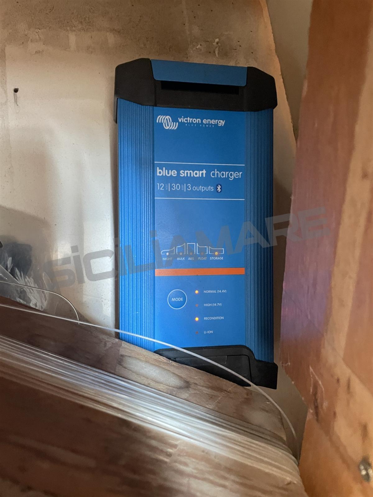 Alternator, Water pressure pump, 2 Batteries (100 Ah (Motore + Servizi)), Deck Shower, Twin Steering, Platform, Manual Bilge Pump, Shorepower connector, Electric Windlass, swimming ladder, Outboard Engine Support Bracket.