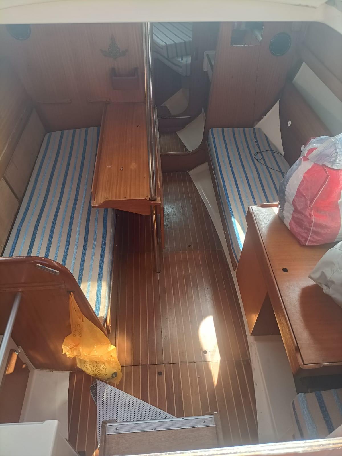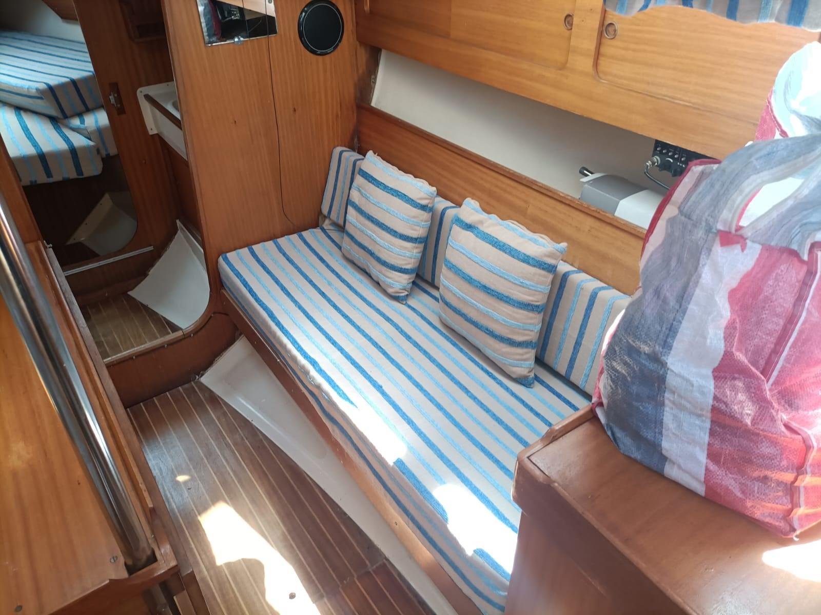 Special features: - rollaranda (on the boom) and jib roll - 28 HP Yanmar engine with a few hours of motion (the standard is 14 HP), double diesel filter - hull: anti-osmosis treatment on site, with technical-instrumental verification specialized on fiberglass and bulb pins; new hull valves, new teak cockpit - Instrumentation electr. wind + echo sounder + autopilot + ground socket - 6 berths, totally new cot cushions, fridge - New gennaker with sock - 2 propellers: one with two fixed blades, one with three closable blades - Marine toilet with electric discharge