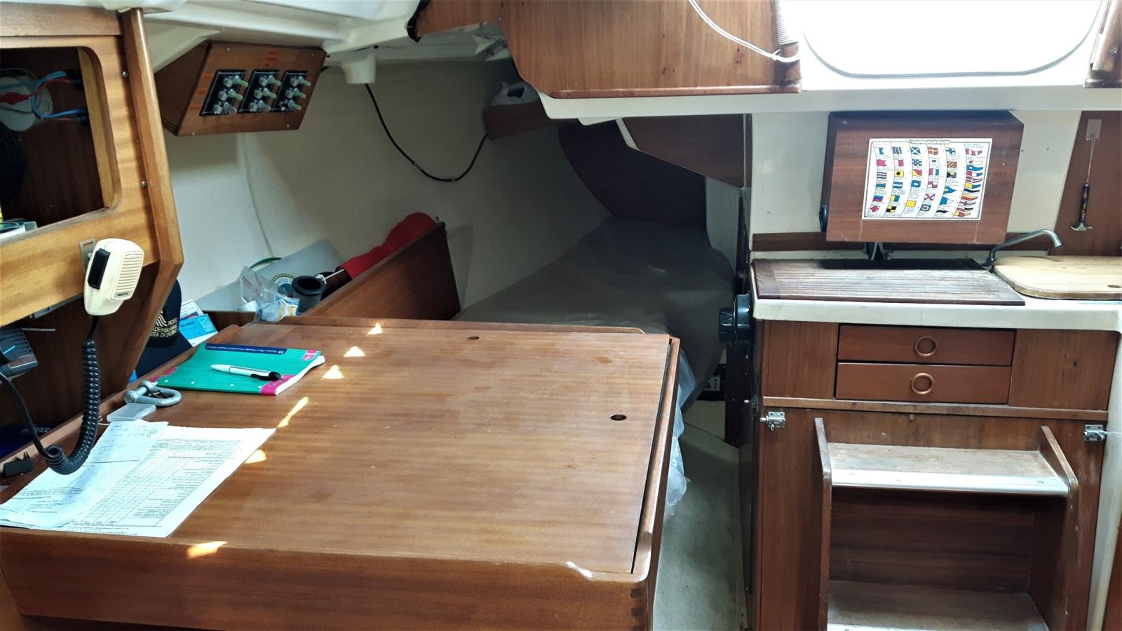 Boat of 8.95 m. ft in vtr. Prog. by P. Harlè, cast iron bulb; width 3.10m., draught 1.45 m. (alternative to that of 1.70), displacement 3200 kg, internal alt. 2 m., built by the Mallard shipyard (FR) in 1980; Marconi equipment of S.V. 49.5 square meters, with jib at the masthead, rudder equipped with skeg. The boat was fully tested and retrofitted (hull, equipment and engine) in 2019. Endowments within 6 mg.