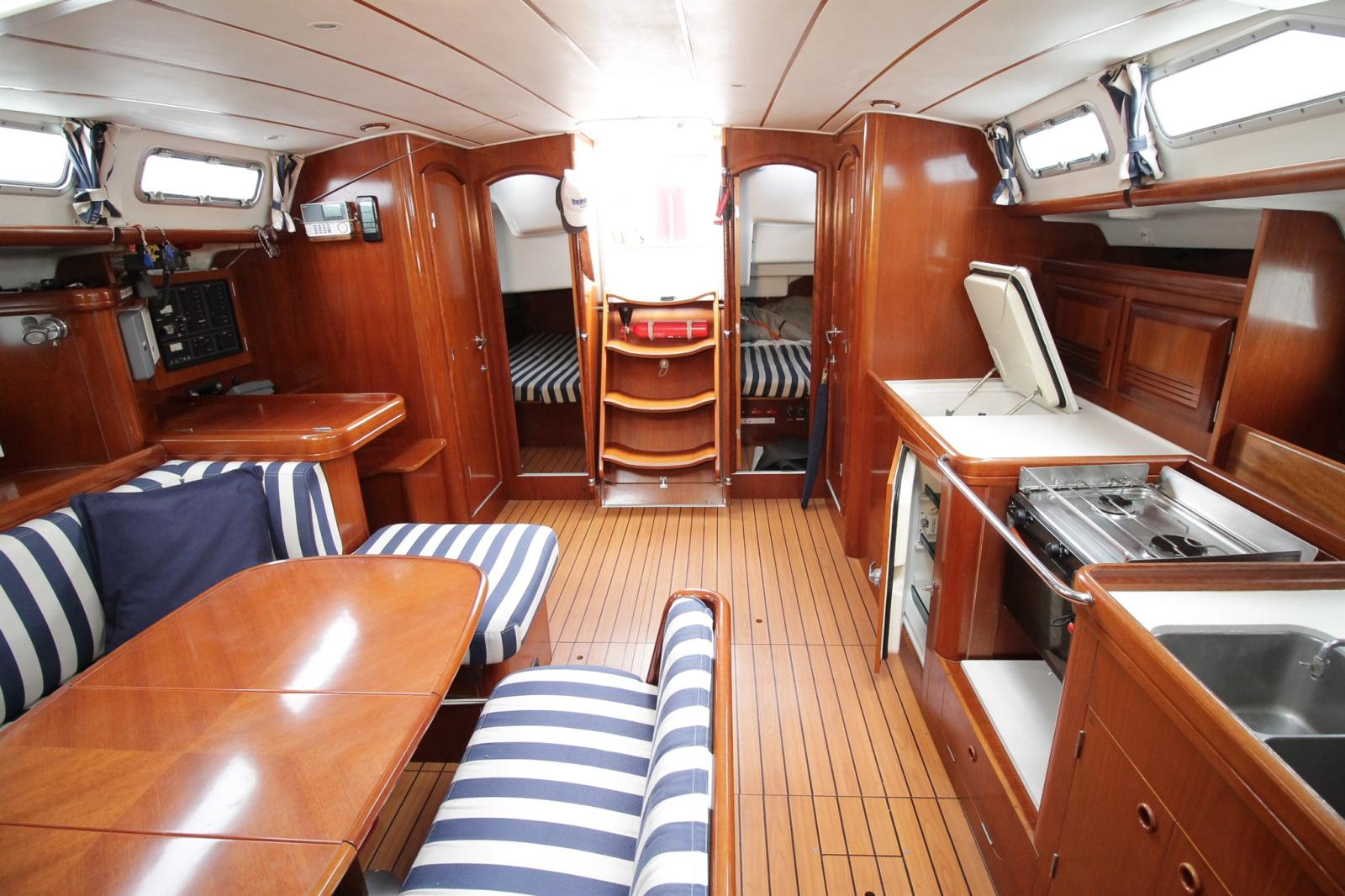The company PHILIPPE PLAISANCE offers you a magnificent OCEANIS 473, 4 cabins / 3 bathrooms version. This sailboat, excellent at sea, is ideal for long voyages, large families or sailors looking for many storage solutions. It can be converted into a 3-cabin version! Never rented, without any trace of osmosis, it offers beautiful woodwork. The rigging and furling are replaced, new hood, jettisonable forestay and staysail, new batteries, Webasto heating, completely overhauled Yanmar engine, folding propeller, gantry, solar panels, radar, etc. A rare opportunity on the market! Berth and handling possible