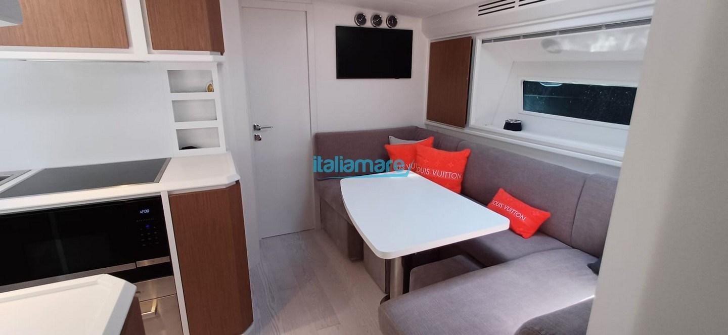 The interiors, sober but refined, combine elegance and functionality. The layout is designed to offer privacy and comfort on board, with bright rooms, essential furnishings and fine materials. Each space is designed to ensure a pleasant life on board, whether it's a short cruise or an entire vacation at sea.