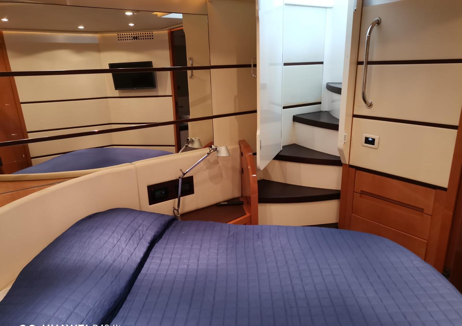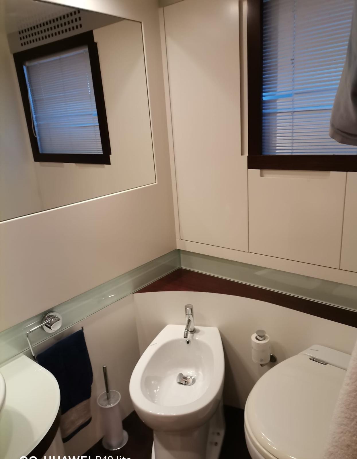Engine Alarm, Bilge Alarm, Water pressure pump, 24 Batteries, Battery charger (Mastervolt), Deck Shower, Bow Thruster (Side-power), Directional Spotlight, Electric Flaps, Hard top (elettroidraulico), Flaps Indicators, Anchor Chain Washdown, Washbasin in the cockpit, Courtesy Lights (led), Underwater lights, Gangway (idraulica a scomparsa Besenzoni), Platform, Automatic Bilge Pump, Manual Bilge Pump, Entry door, Teak Cockpit, Shorepower connector, Water harbor connector system, Electric Windlass, swimming ladder, cockpit table (prendisole), Tender (Williams turbojet), Horn, 2 Stern Winches.