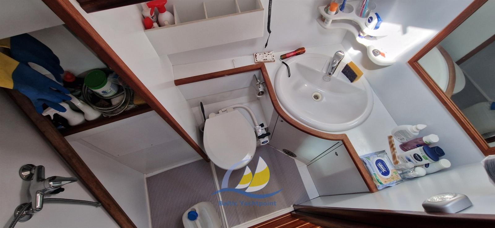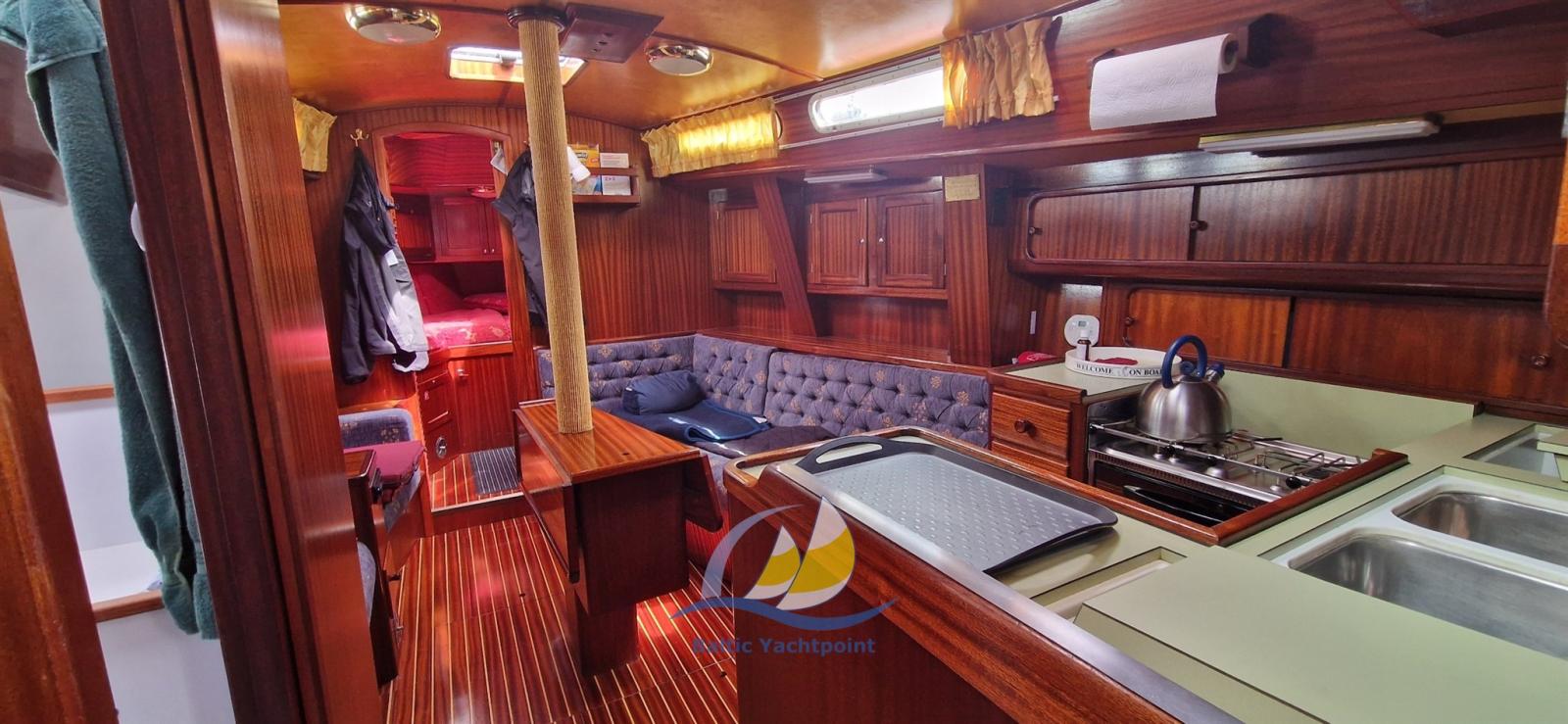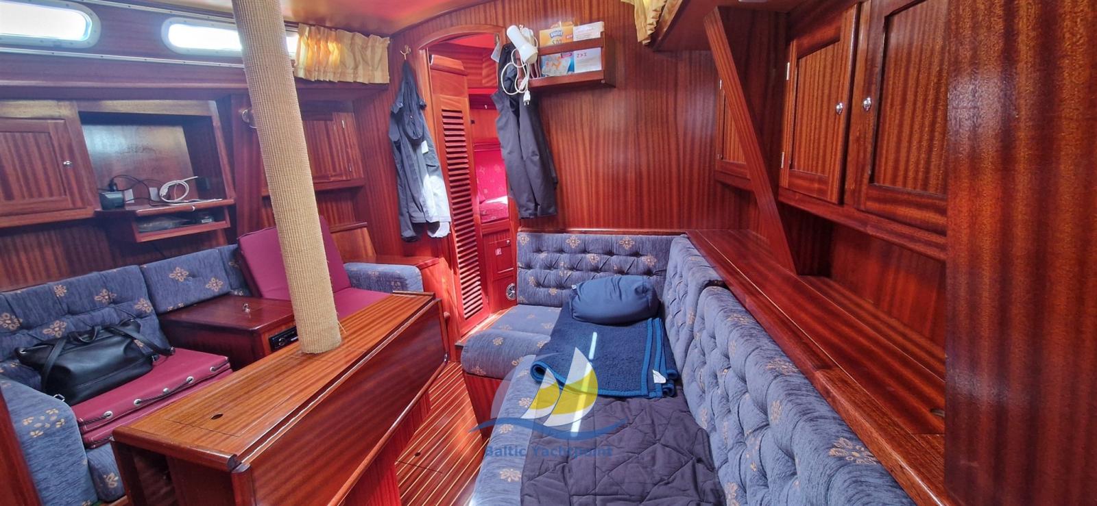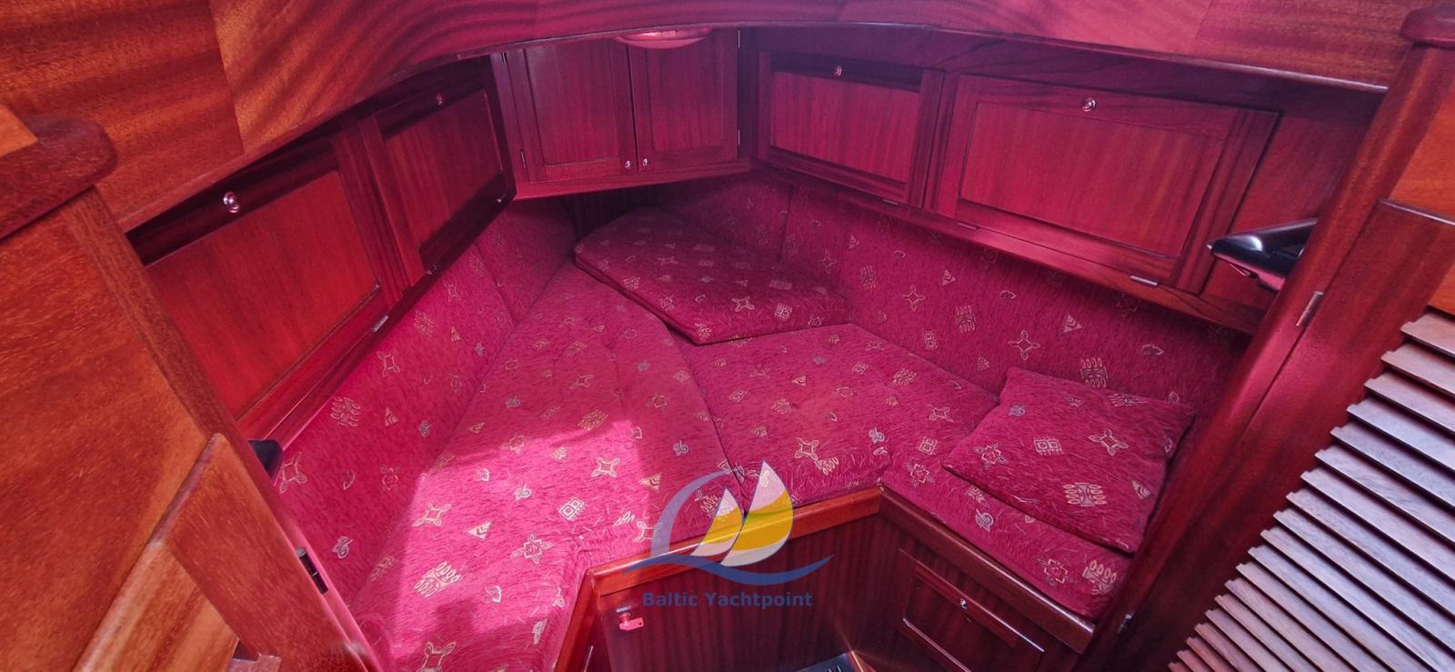 Engine Alarm, 3 Batteries, Teak Side Decks, Twin Steering, Manual Bilge Pump, Teak deck, Entry door, Teak Cockpit, Shorepower connector, Electric Windlass, Strand rigging (erneuert 2025), swimming ladder, cockpit table, Horn, Winch (3x elektrisch).