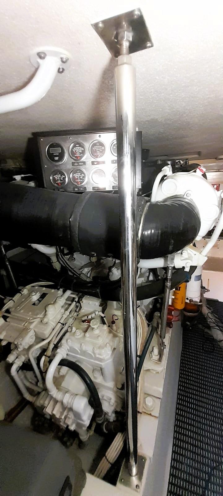 Rudder angle indicator, Radar Antenna, 3 Electronic engine control, Plotter with GPS antenna, 2 VHF Radio, Co-pilot seat, SSB.