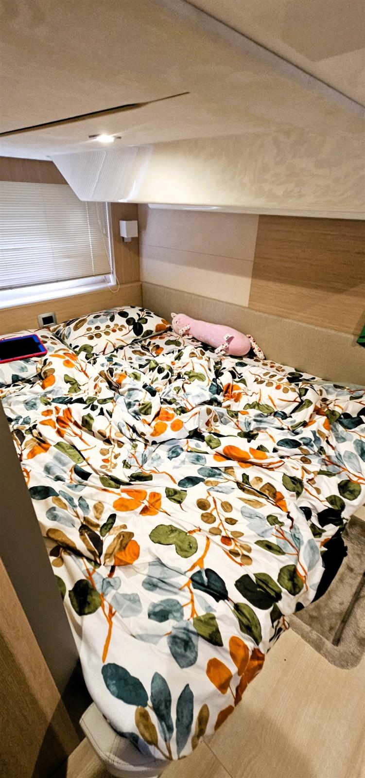 Bow Cushions (portaoggetti + copertura), 2 Blackout Curtains (nei saloni), Sunshade, Mosquito nets (oscurante su passo uomo cabina prua, su oblo').
