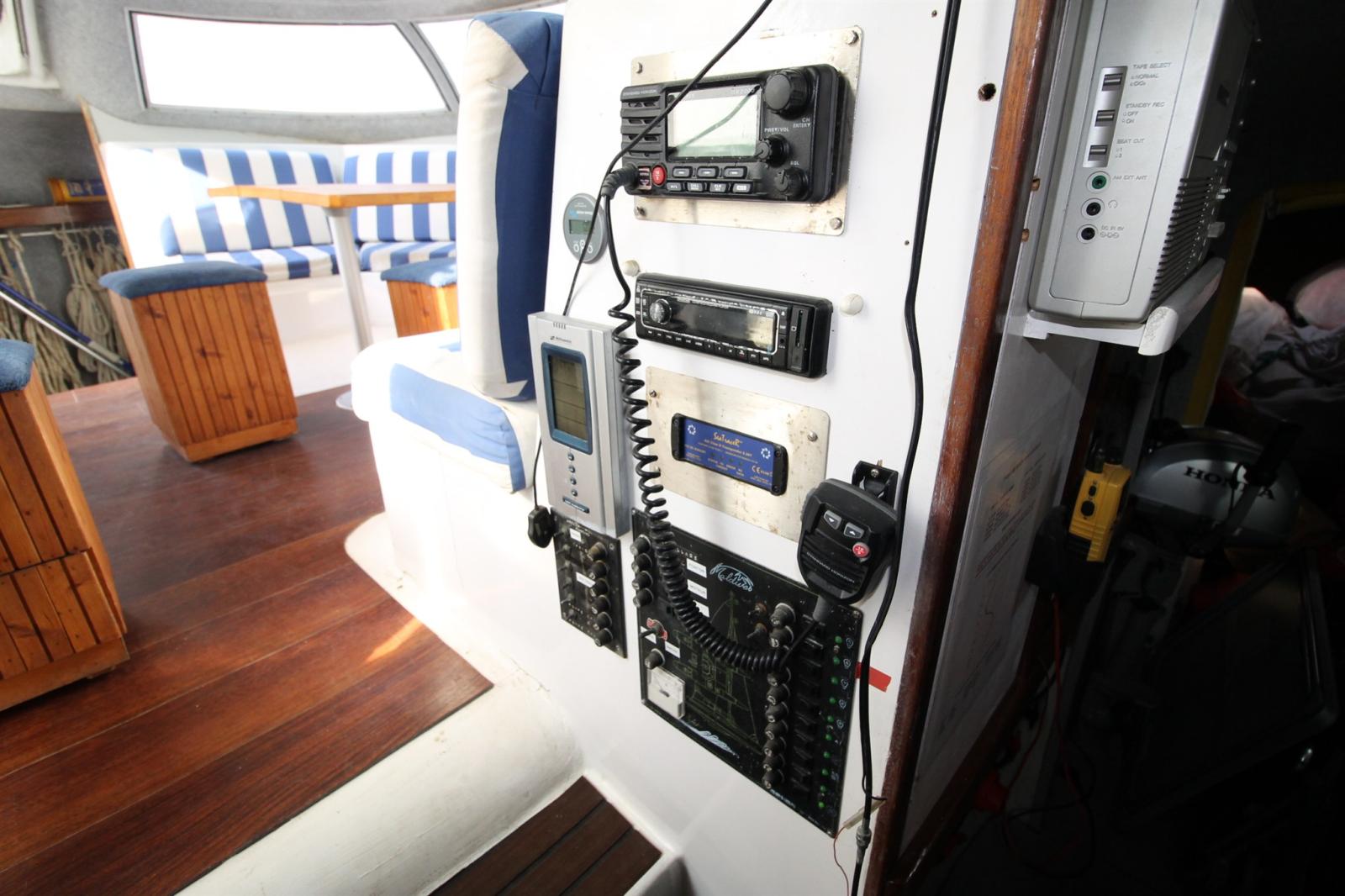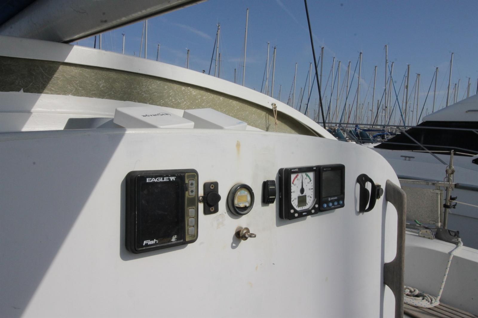 AIS (Seatracer class B (emet/recept)), DSC vhf (STANDARD HORIZON GX 2000), 2 Autopilot, VHF Radio (portable), Sonar, Wind Station (remplacé par ADVANSEA).