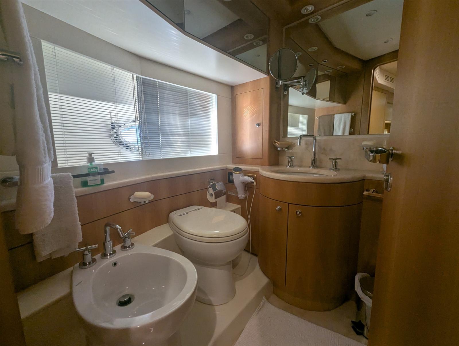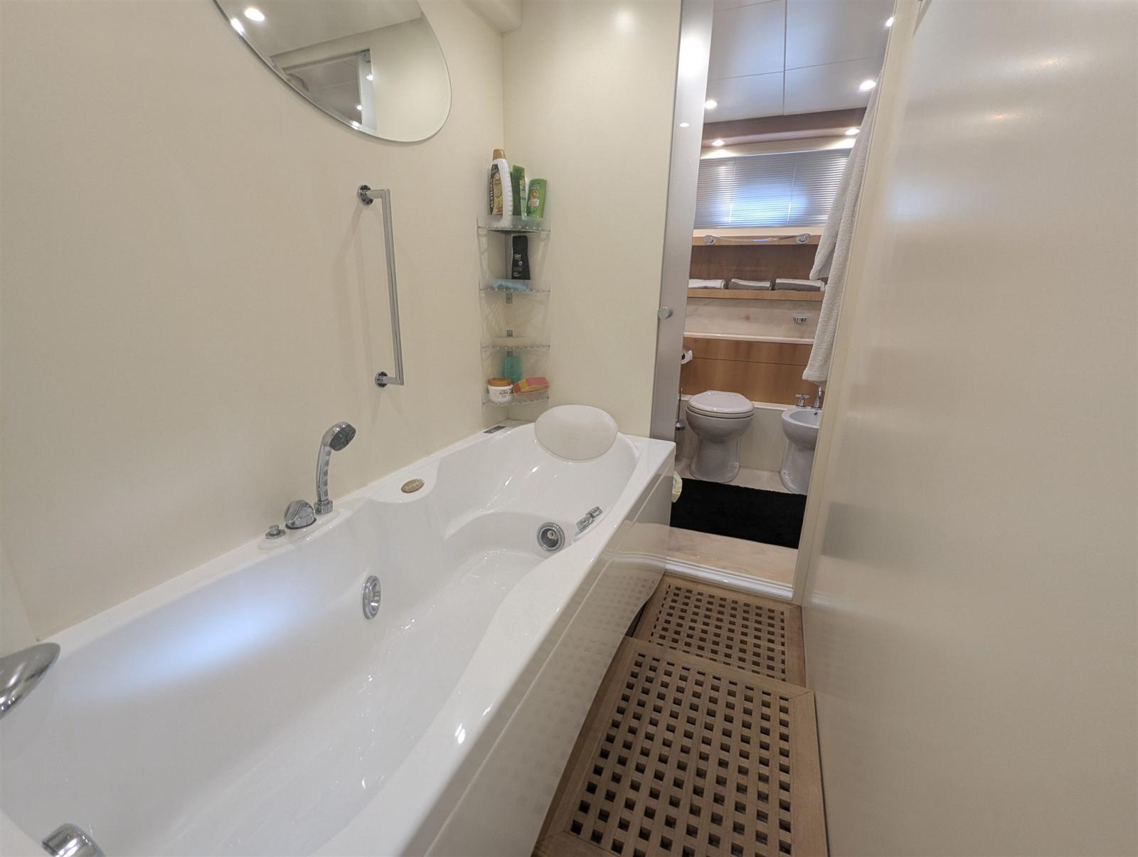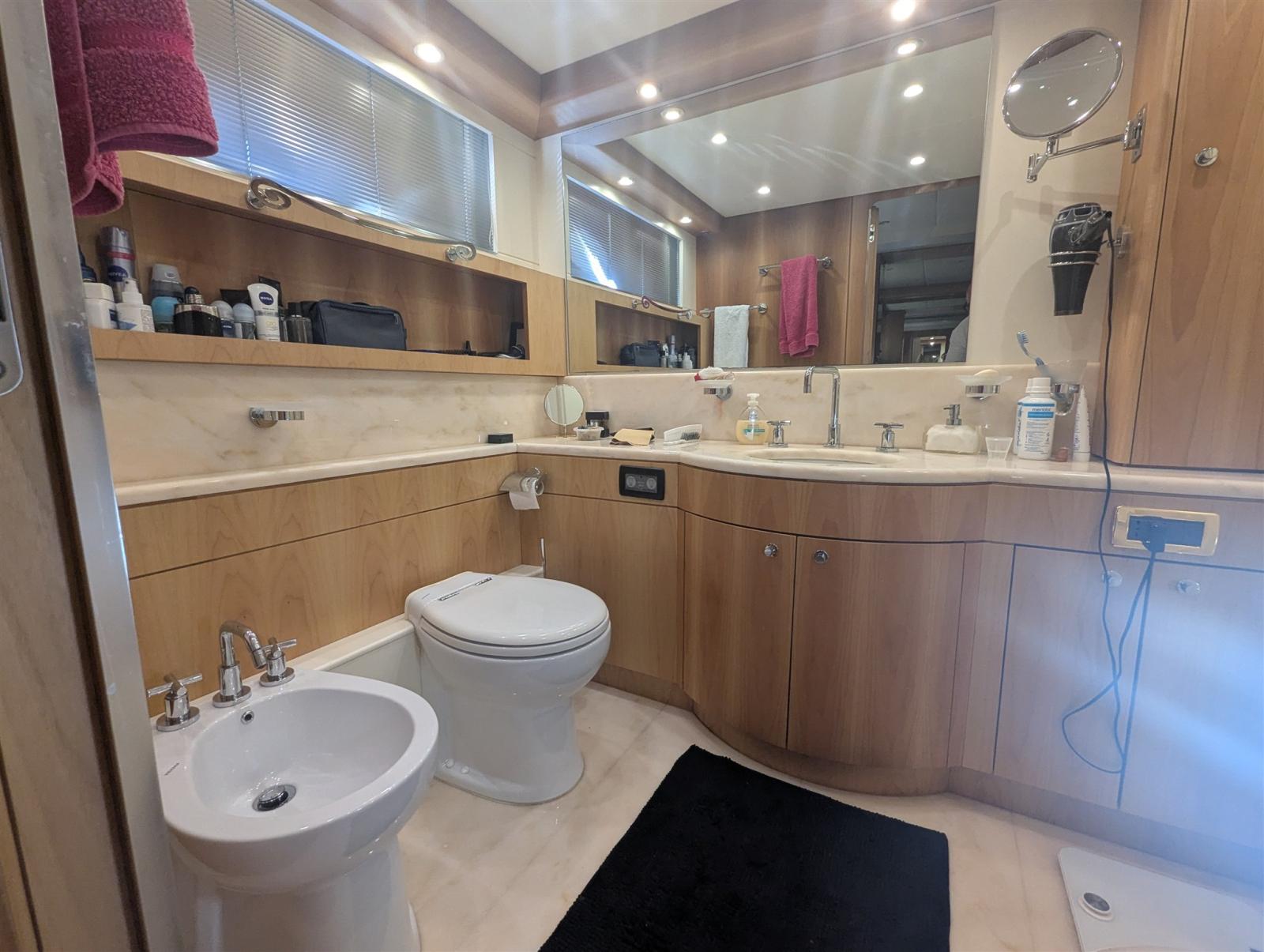 Air Conditioning (doppio ciclo), Warm Water System (bivalente), Inverter Air Conditioning, Watermaker (Idromar), Waste Water Plant, Interior wooden floor, 12V Outlets, 220V Outlets, Black Water Tank, 3 Video camera (cockpit & engine room), 5 Electric Toilet.