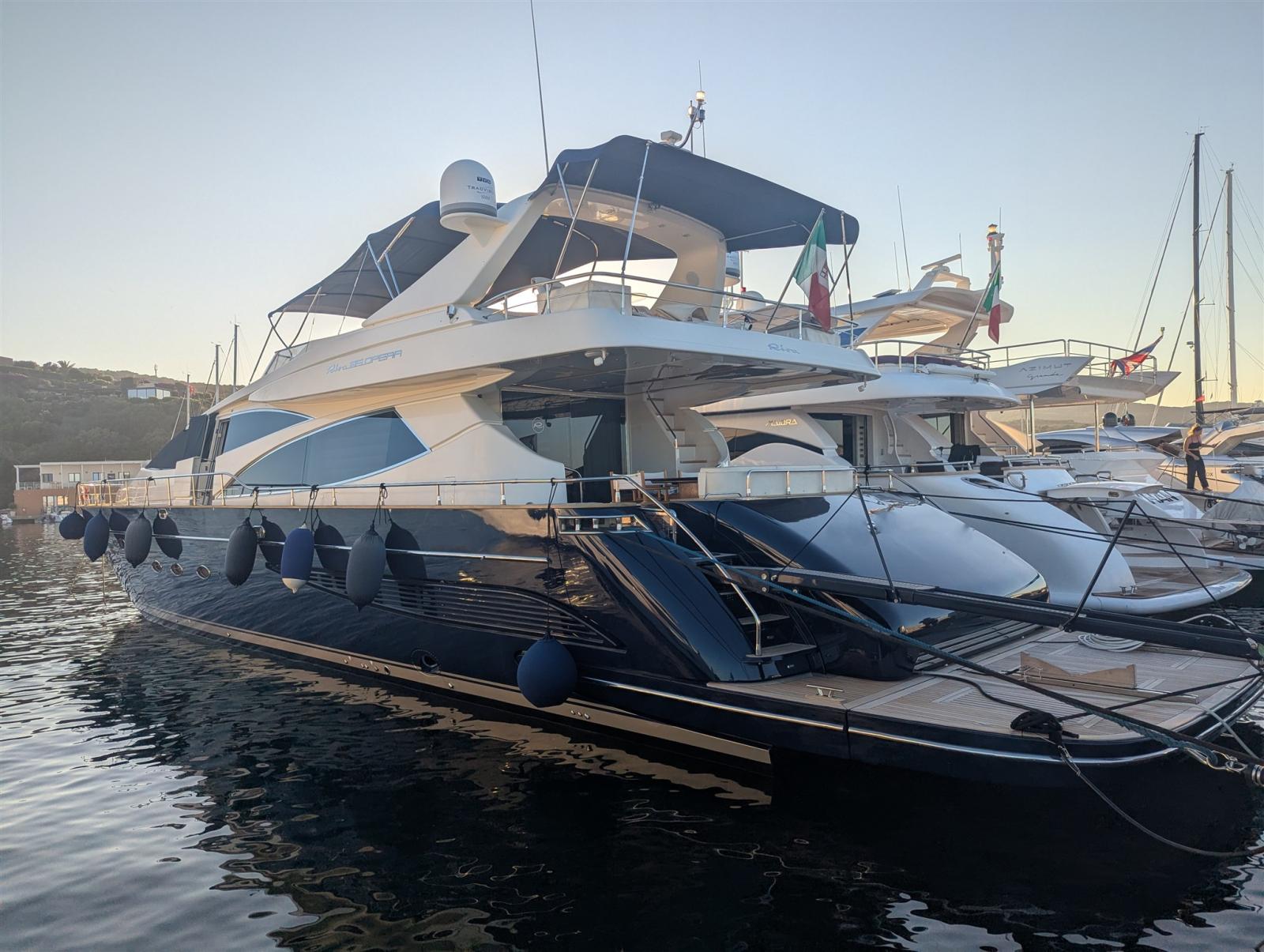 The Riva 85 Opera is an icon of elegance and performance. With an overall length of 26 meters, but with approval under 24, it offers all the advantages of a superyacht while remaining in the category of pleasure boats. This rare version with three cabins and three bathrooms is designed for the owner who puts comfort and privacy first. The full-width owner's suite is a real apartment on the sea, enriched by a private study to work or relax in total privacy. The VIP cabin and the double cabin, both with ensuite bathrooms, provide guests with generous spaces and fine finishes, offering a level of habitability and comfort that four-cabin configurations cannot match. The large saloon, bright and with attention to detail, leads to a separate galley in the bow, with latar access for the crew on board. On the Fly, large and well-kept, there is space for the control area, a large covered dinette and a relaxation area at the stern. This Riva 85 Opera represents the essence of high-end private yachting: few guests, generous spaces, absolute privacy and the timeless charm of Riva design.