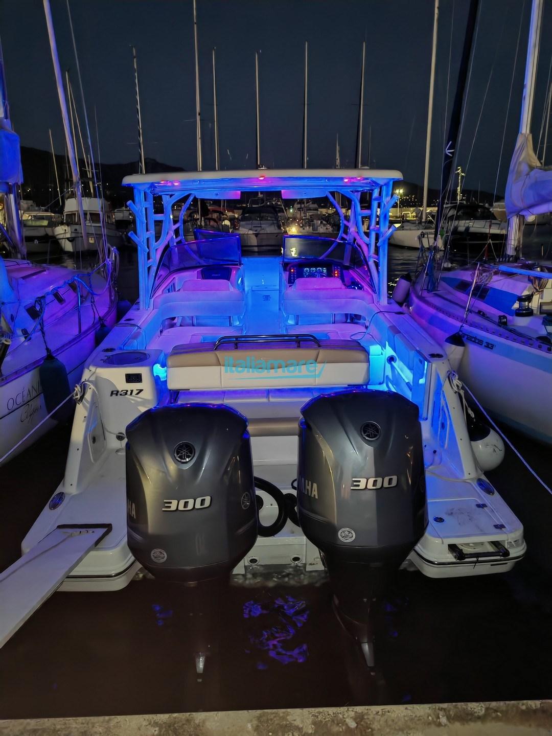 The Robalo R317 is a high-end 9.5-meter boat designed to offer the maximum balance between day cruiser comfort and sports boat performance. Equipped with a double console, it offers a versatile layout with large sunbathing areas, separate bathroom and storage cabin.