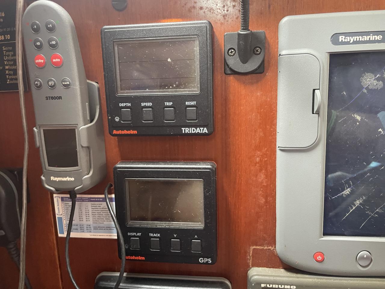 Raymarine central navigation with log, depth sounder, wind speed and wind direction Navtex Raymarine E120 GPS charts plotter