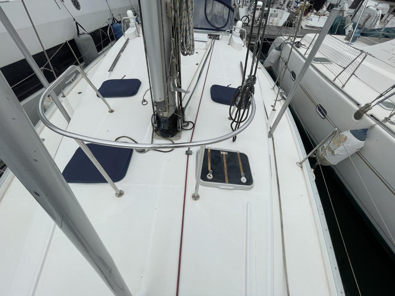 Océanis 461 was built in 1997 by the Beneteau shipyard, with a bright saloon and a good headroom, this cruising sailboat is comfortable, robust and well appointed. Very popular for long-distance cruising and life on board, galley long shape on port, three cabins and two bathrooms