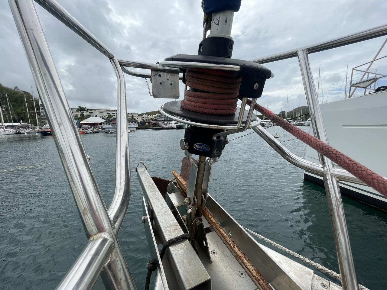 One Lewmar winche ST 48 on port roof