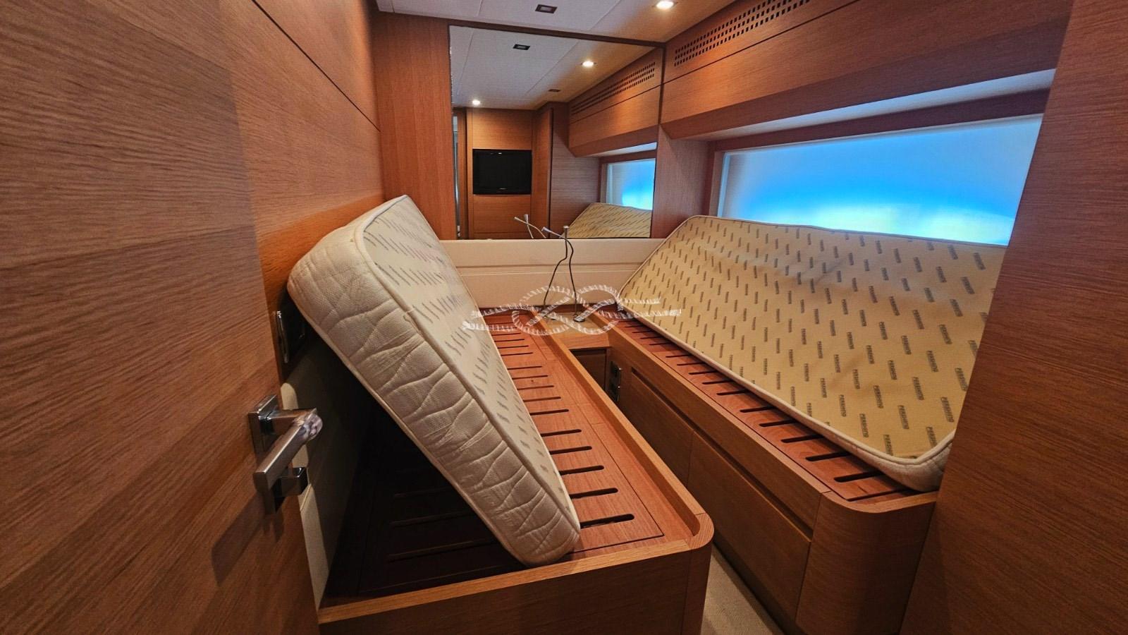 Master cabin with double bed, walk-in closet and bathroom - vip cabin with double bed and bathroom - guest cabin with two beds on the floor - guest cabin with two beds on the floor - guest bathroom.