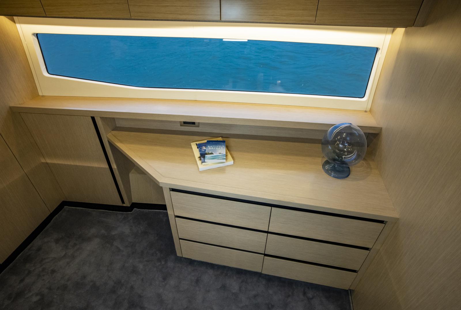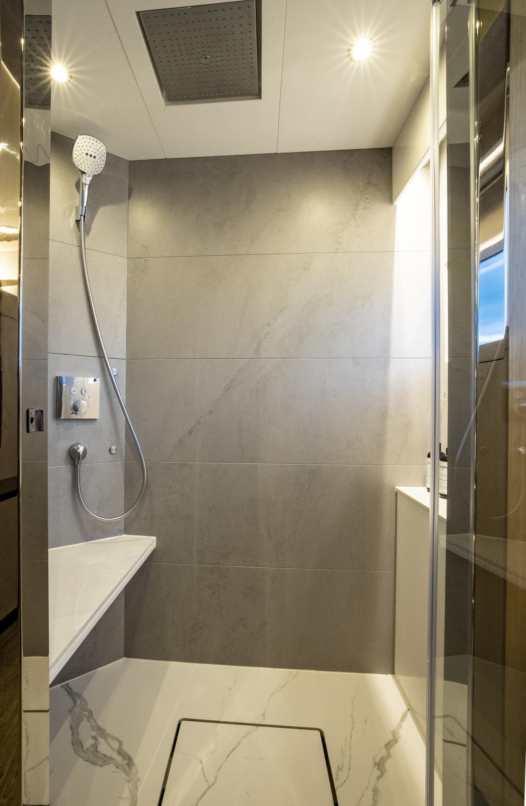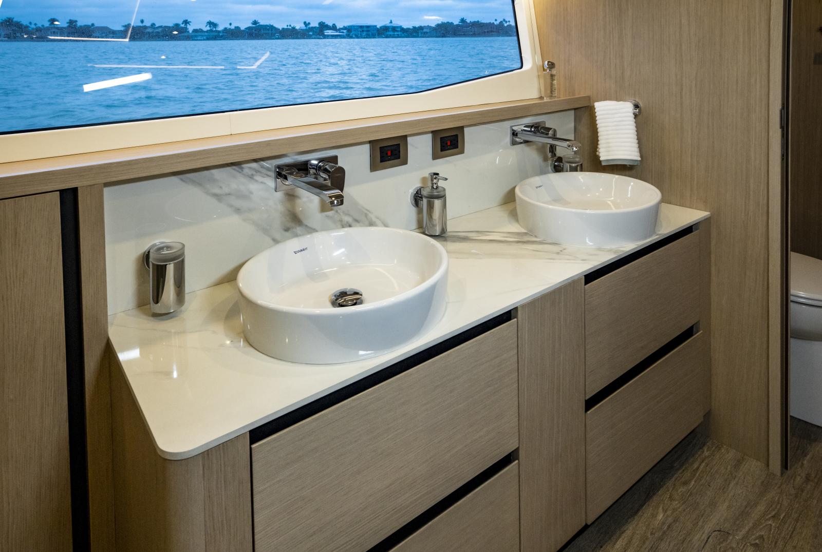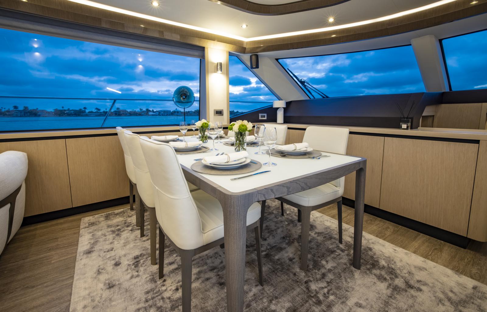 Volume et confort exceptionnels : grand salon lumineux, suite propriétaire de 27 pieds de large, options d’aménagement 3 ou 4 cabines, galley ‘up’ ou ‘down’, avec matériaux haut de gamme et nombreuses fenêtres panoramiques