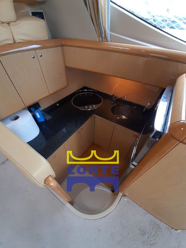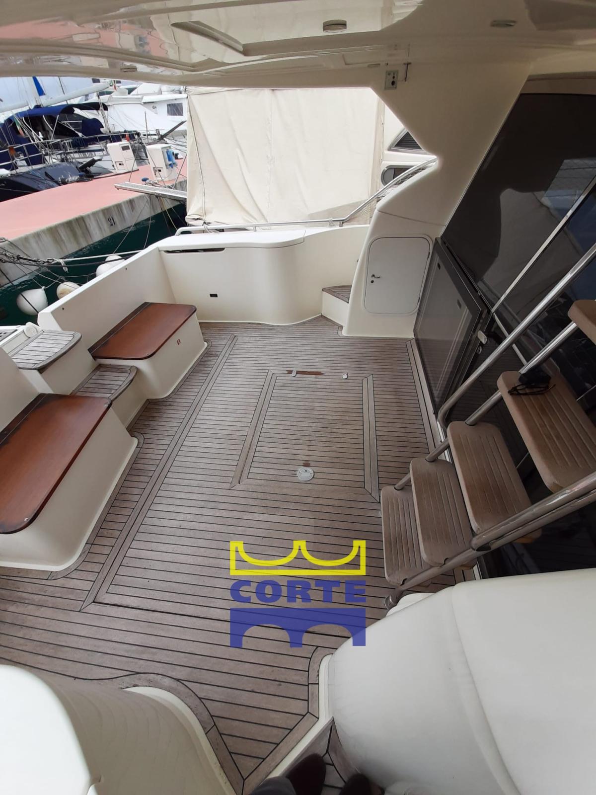 Engine Alarm, Bilge Alarm, Water pressure pump, Deck Shower, Twin Steering, Secondary Propeller, Hydraulic Flaps, Fire Extinguishing System, Anchor Chain Washdown, Underwater lights, Gangway (elettroidraulica con sollevamento tender), Platform (di poppa con grande ripostiglio), Automatic Bilge Pump, Manual Bilge Pump, Entry door, Teak Cockpit, Shorepower connector, Water harbor connector system, Electric Windlass, swimming ladder, cockpit table (inox), Tender (Genius 260 con poppa ribaltabile), Horn.