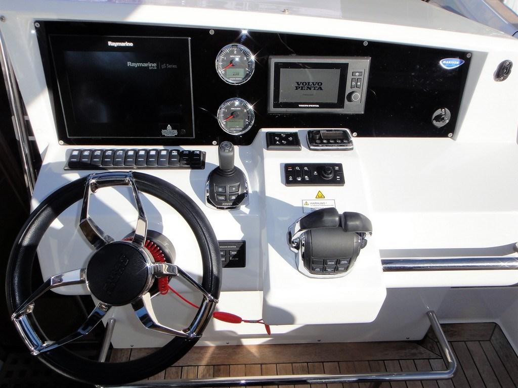 Rudder angle indicator, Electronic engine control (EVC), 3 Display (Volvo Penta analogic RPM + 7" display), DSC vhf, Joystick, Chartplotter (Raymarine), 2 Co-pilot seat.